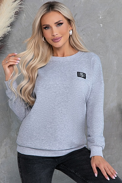 Свитшот  свободного силуэта из хлопкового трикотажного полотна футер трехнитка(ткань производство Турция)  с отделкой трикотажной рибаной и декоративным элементом.