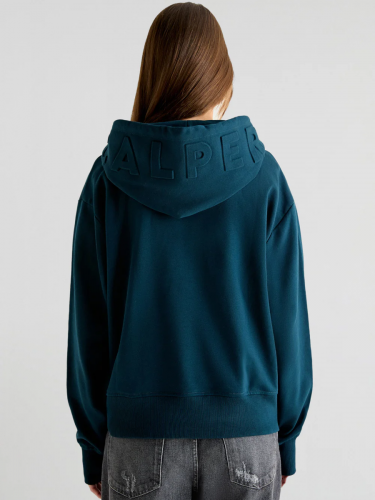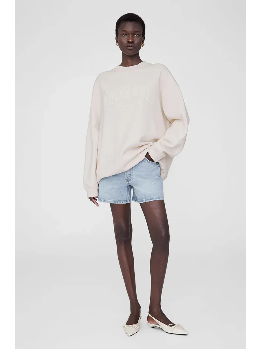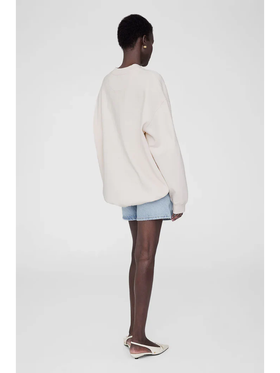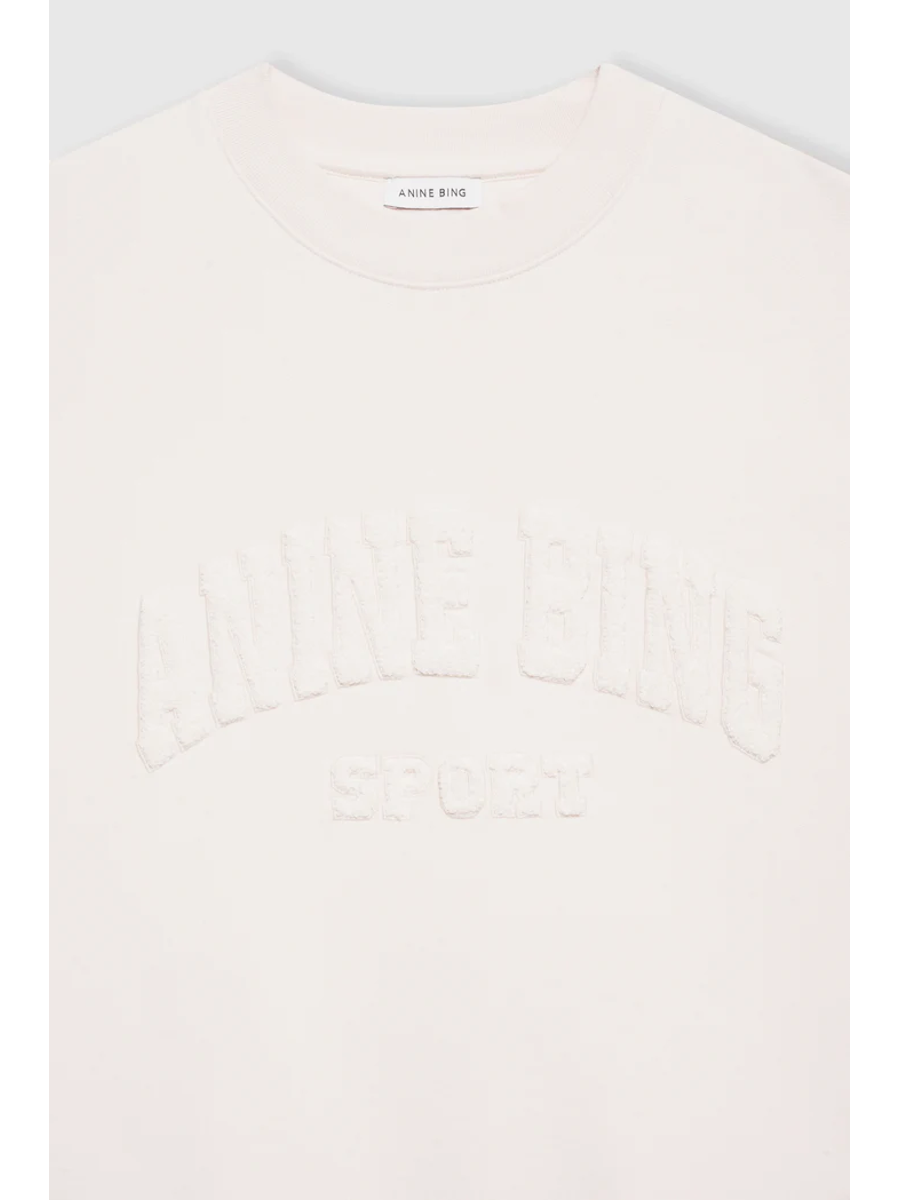 Круглый вырез горловины, спущенная линия плеча, длинные объемные рукава и нашивка Anine Bing Sport спереди.