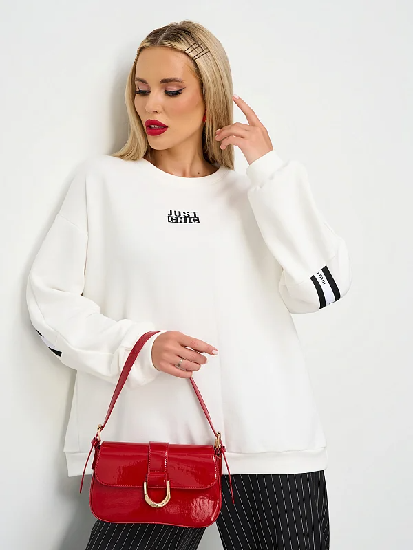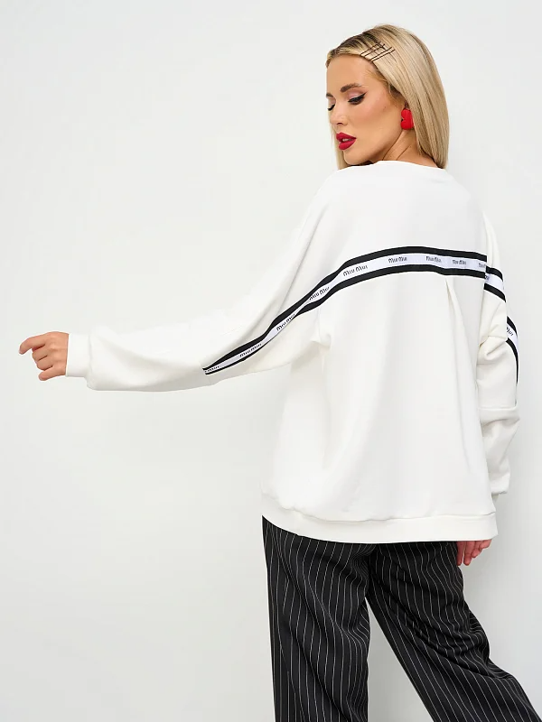 Свитшот  свободного кроя, сзади с декоративной вставкой из репсовой ленты.