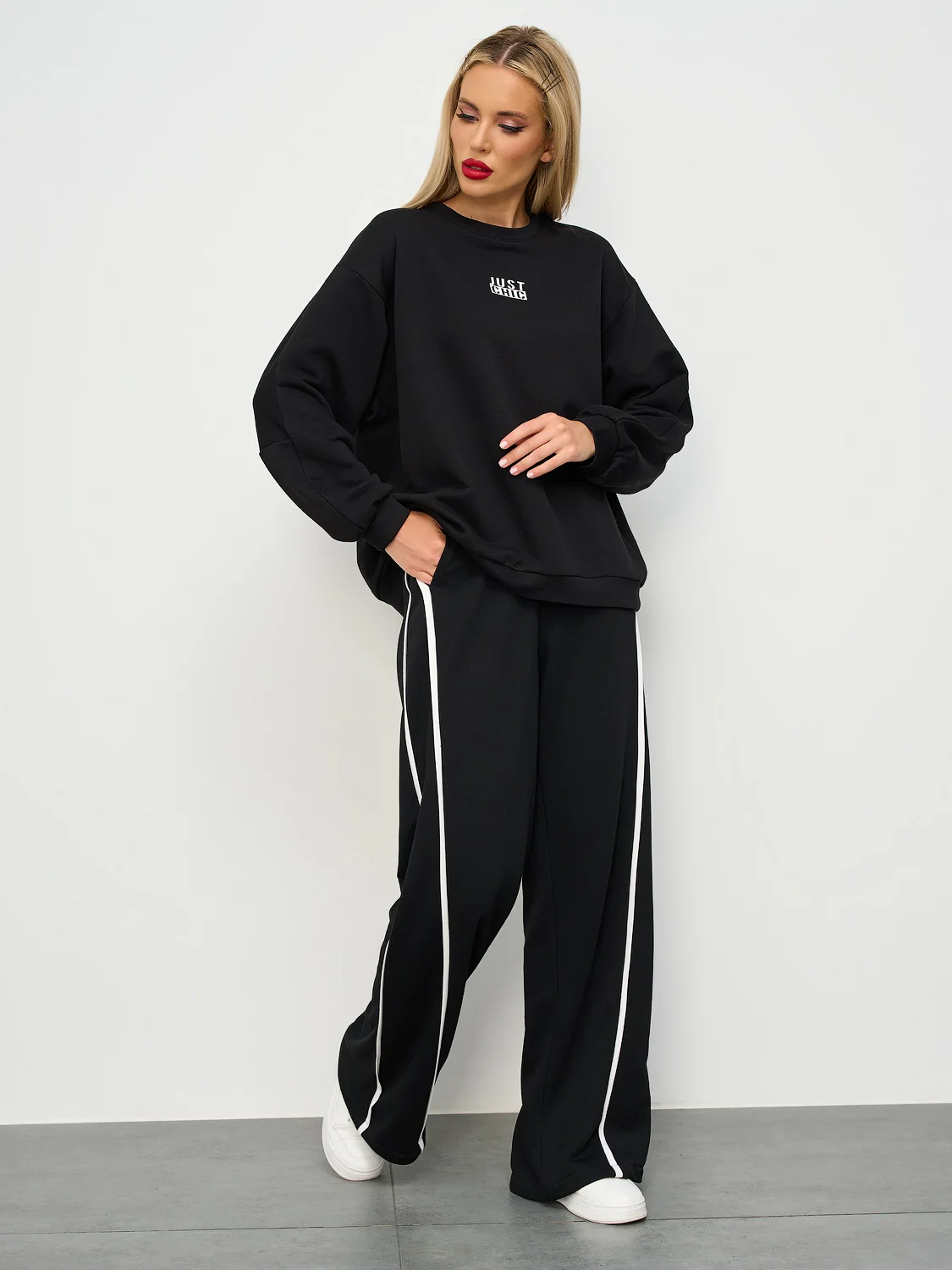 Свитшот  свободного кроя, сзади с декоративной вставкой из репсовой ленты.