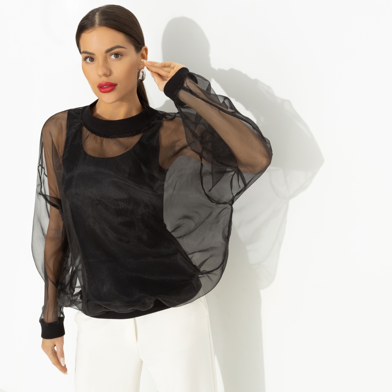Свитшот «Воздушная уверенность» — это воплощение элегантной простоты и изысканности. Изготовленный из органзы блузочной и кашкорсе, он сочетает в себе легкость и комфорт. Эта модель без застёжки идеально подходит для тех, кто ценит свободу движений и стильный внешний вид. Черный цвет свитшота создаёт безупречную базу, позволяя легко комбинировать его с любыми элементами гардероба. Прозрачная ткань добавляет образу загадочности и лёгкой соблазнительности, создавая ощущение воздушности и уверенности в своём выборе.