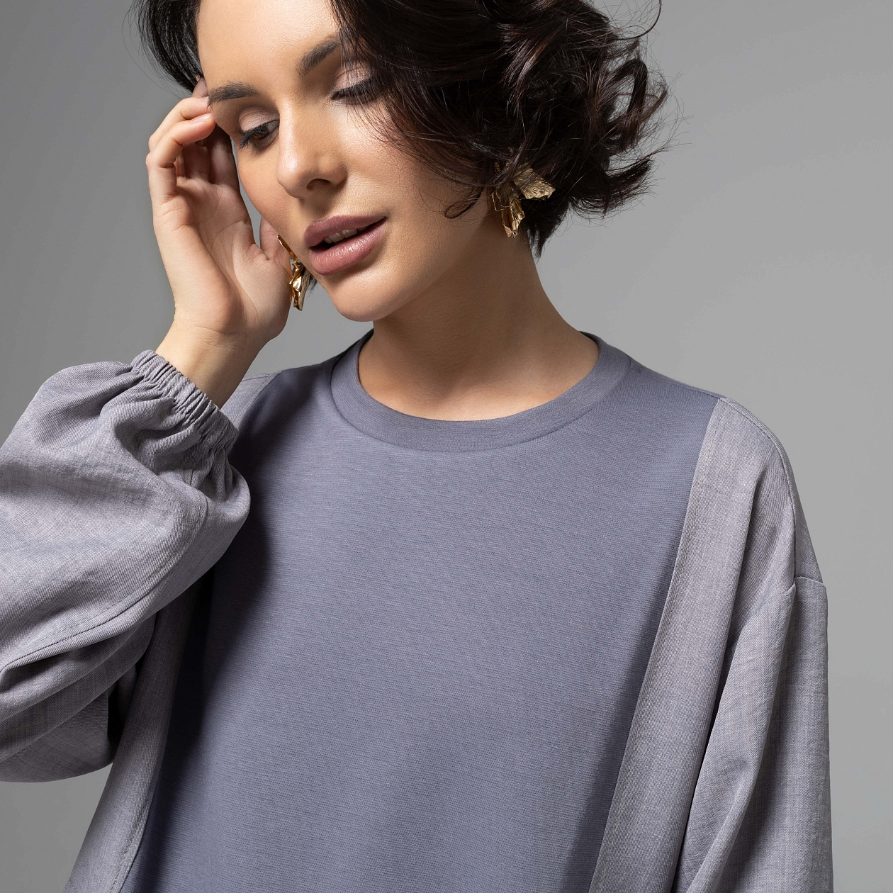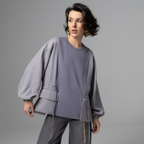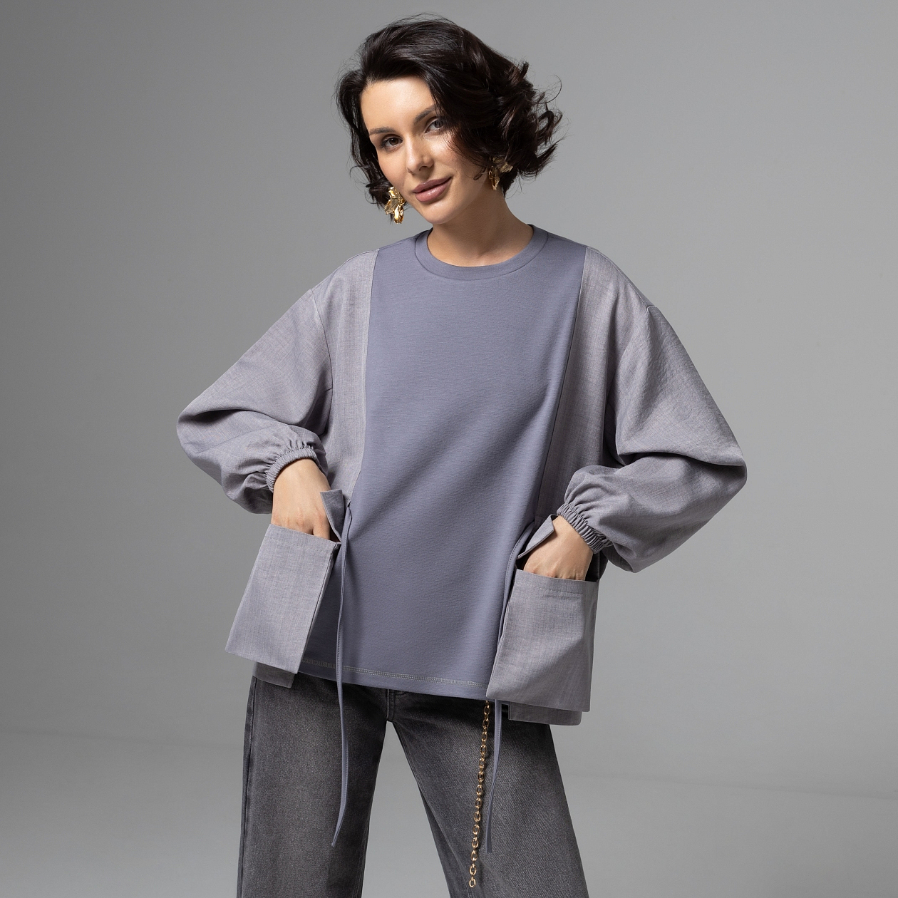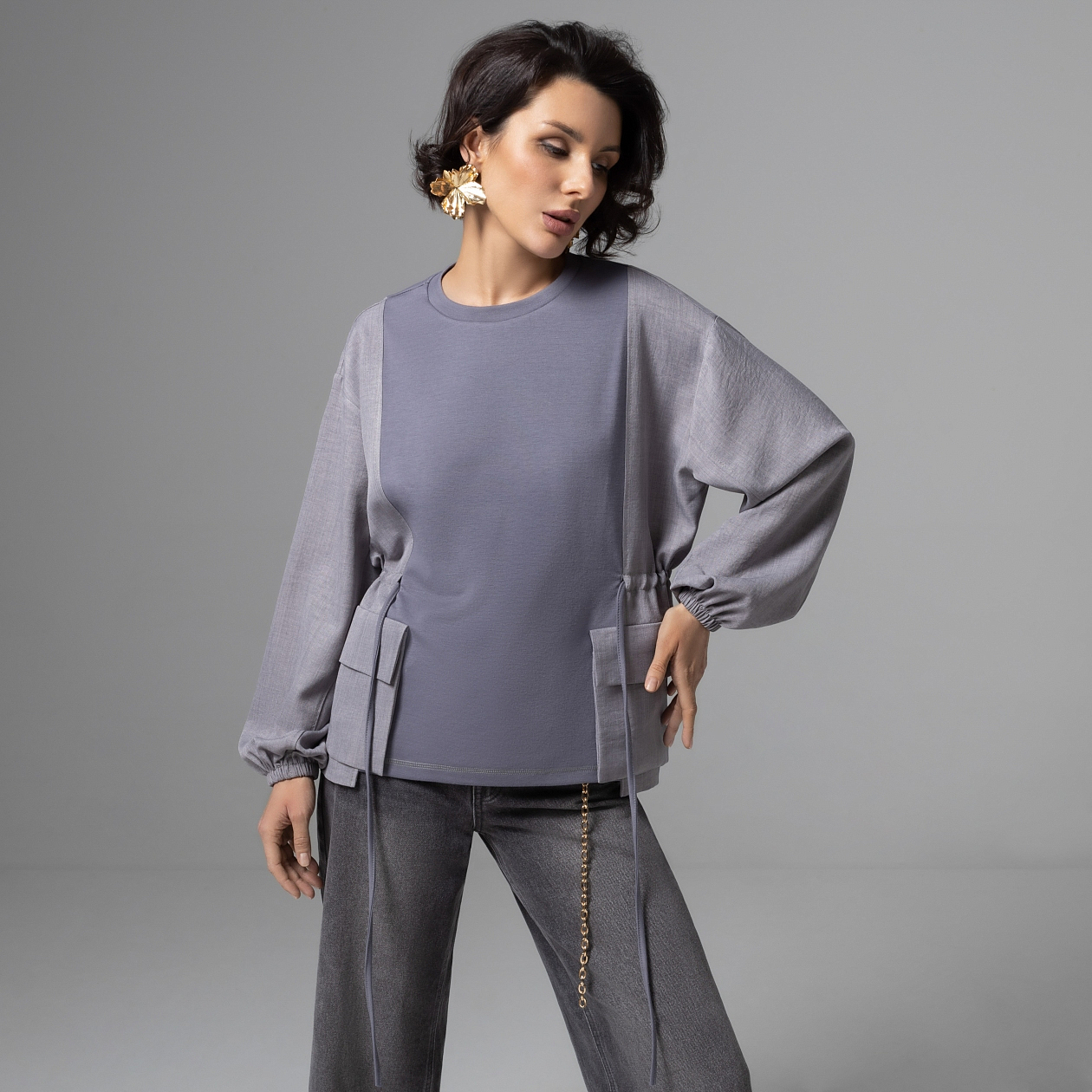 Сочетая сразу два вида тканей, этот свитшот работает как твои любимые монохромные образы: минимум усилий, максимум статуса. Достаточно широких брюк, лоферов и акцентных серёг – и твой кэжуал внезапно получает премиальный голливудский фильтр, будто ты сейчс где-то ммежду между трансфером в бизнес‑классе и поздним бранчем с приглашенными гостями. Свитшот свободного кроя приятен к телу, устойчив к катышкам и долго сохраняет форму. Удлинённый низ мягко маскирует зону талии и бёдер, визуально стройнит. Силуэт регулируется.