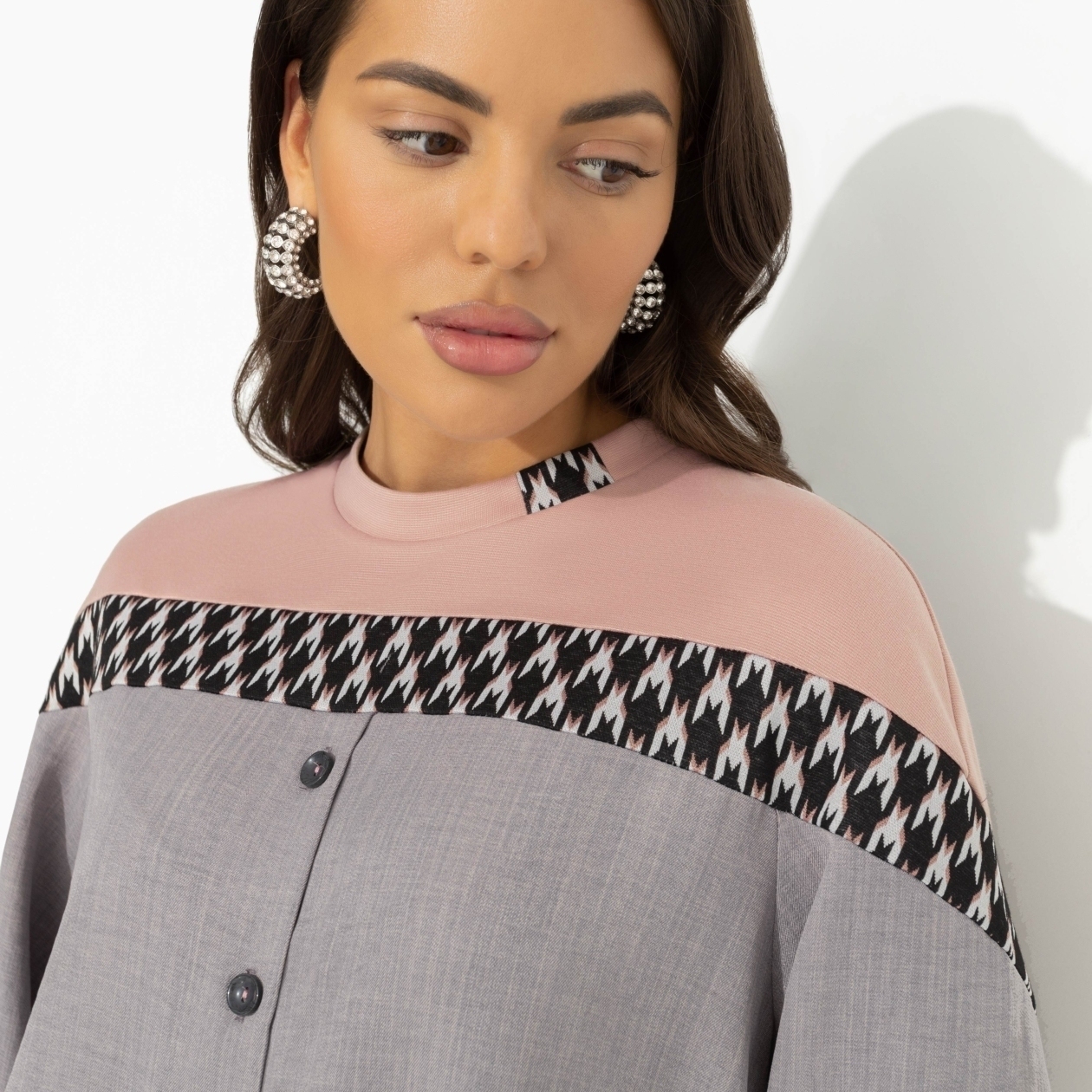 Свитшот, который не выходит из головы. Бомбическое сочетание цветов и замысловатая дизайнерская игра в объединении свитшота и рубашки. Внимание! Свитшот может вам присниться. Свитшот свлбожного силуэта. Имитация комбинации свитшота и рубашки. Изделие с пуговицами. Свитшот хорошо смотрится в заправленном виде и навыпуск.