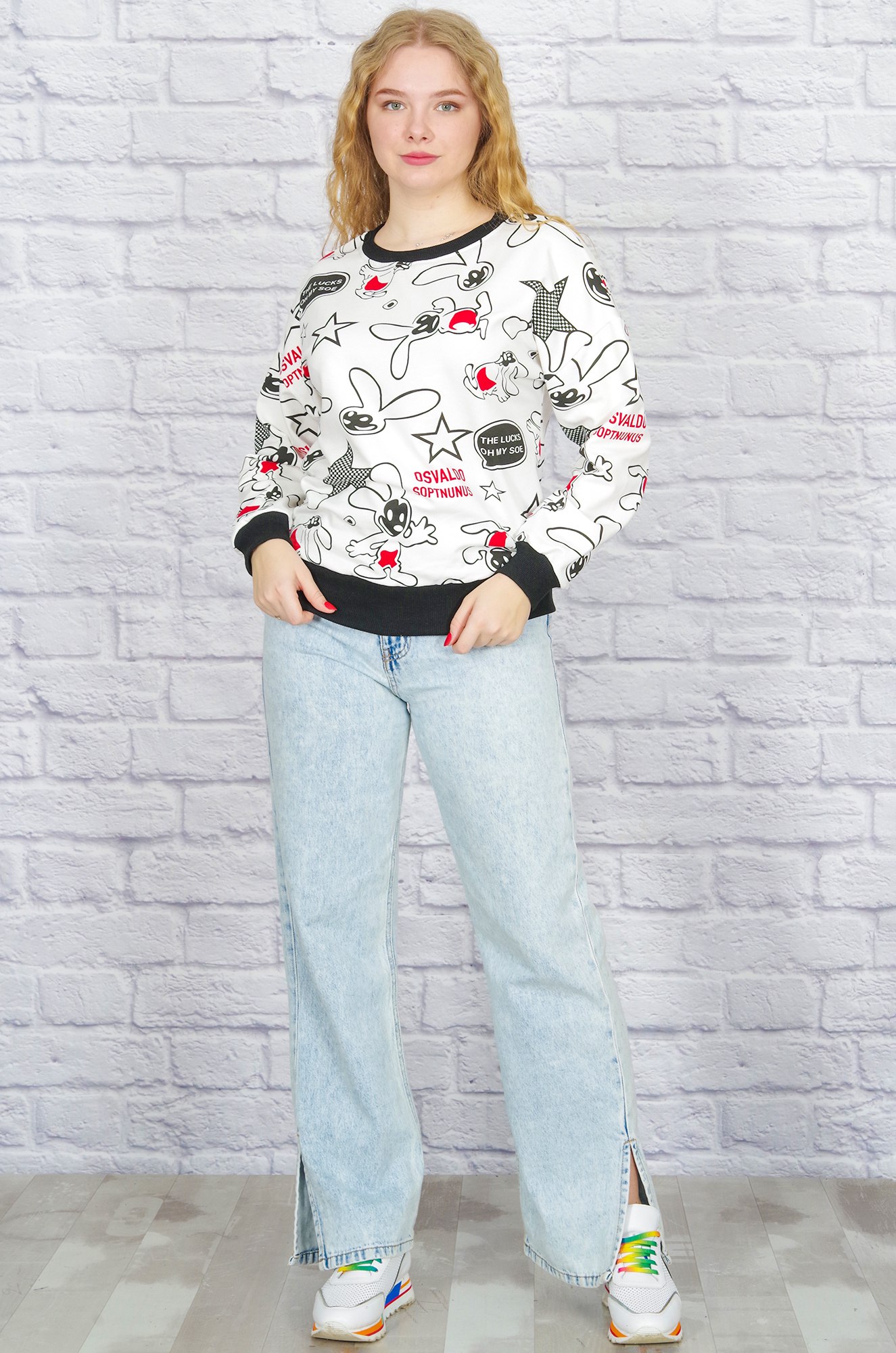 Стильный женский свитшот. Рукава и низ изделия на эластичном манжете. Удобный вариант на каждый день к джинсам и брюкам.