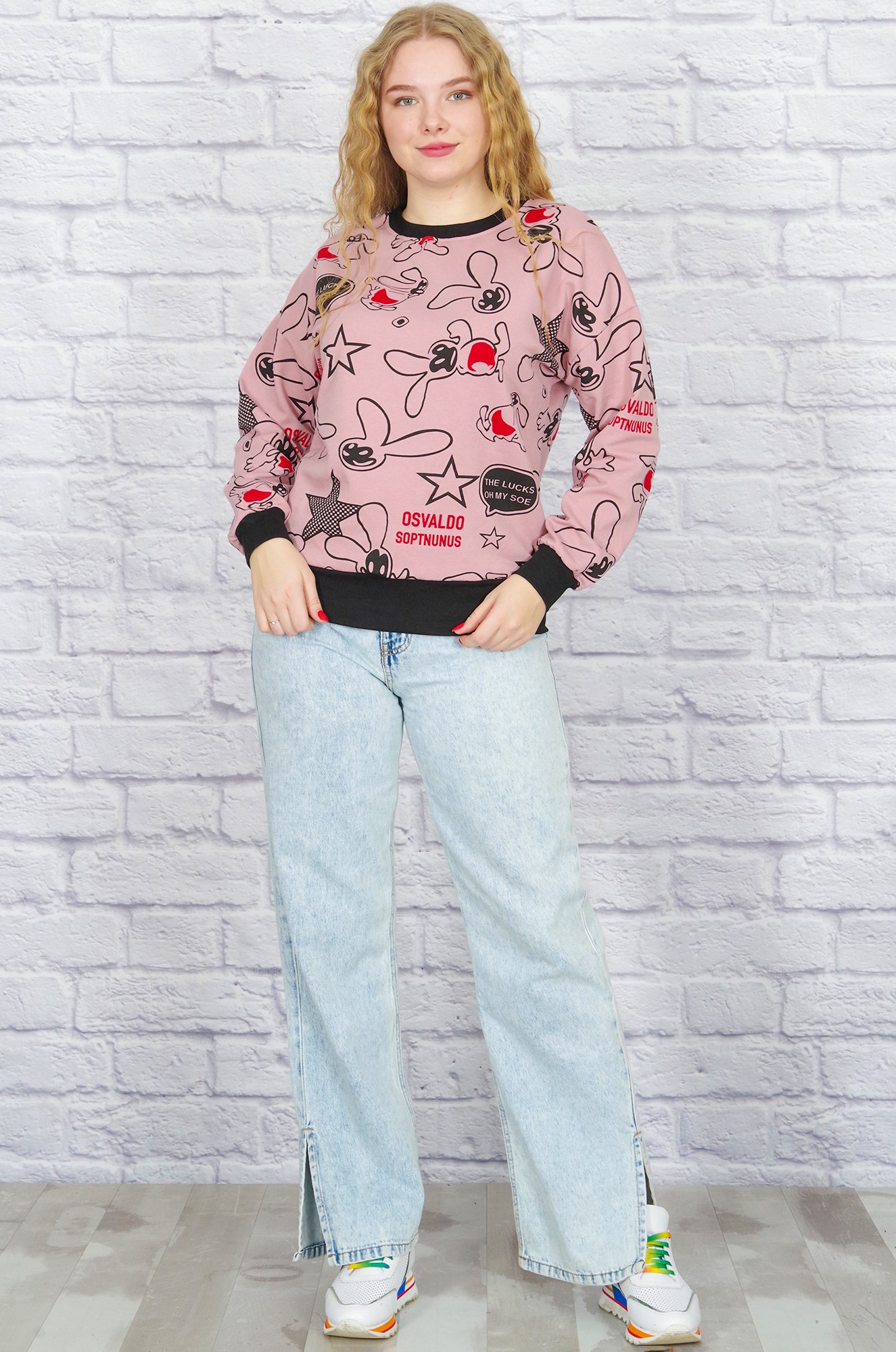 Стильный женский свитшот. Рукава и низ изделия на эластичном манжете. Удобный вариант на каждый день к джинсам и брюкам.