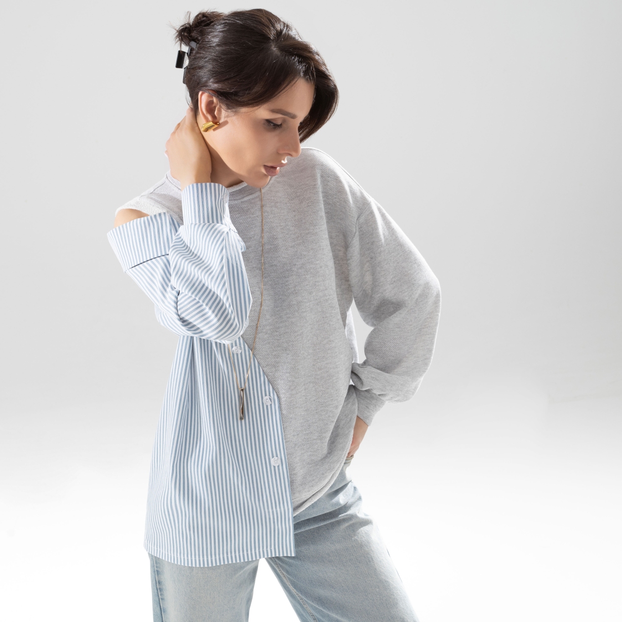 Состав: Трикотаж «футер», «рубашечная поливискоза» (40% хлопок, 30% вискоза, 25% п/э, 5% спандекс)