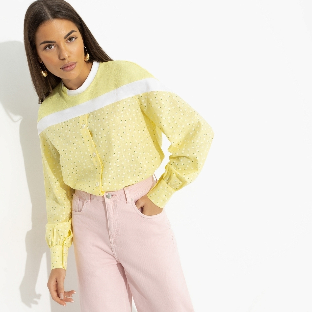 Сохраняем идеи – завтрак на веранде уютного кафе, шоппинг на ярмарке цветов, поездка с ребенком в ботанический сад, фотосессия на пикнике. Под все идеи подходит свитшот CHARUTTI. Он буквально светится в предвкушении. Свитшот свободного силуэта. Комбинация нескольких видов материала. Пуговицы по передней части изделия. Изделие хорошо смотрится в заправленном виде и навыпуск.