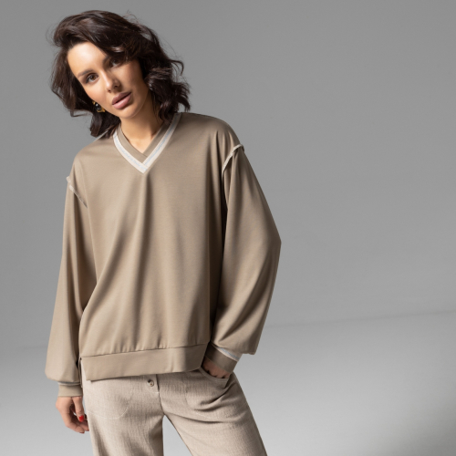 Сохраняем идеи – завтрак на веранде уютного кафе, шоппинг на ярмарке цветов, поездка с ребенком в ботанический сад, фотосессия на пикнике. Под все идеи подходит свитшот CHARUTTI. Он буквально светится в предвкушении. Свитшот свободного силуэта. Комбинация нескольких видов материала. Пуговицы по передней части изделия. Изделие хорошо смотрится в заправленном виде и навыпуск.