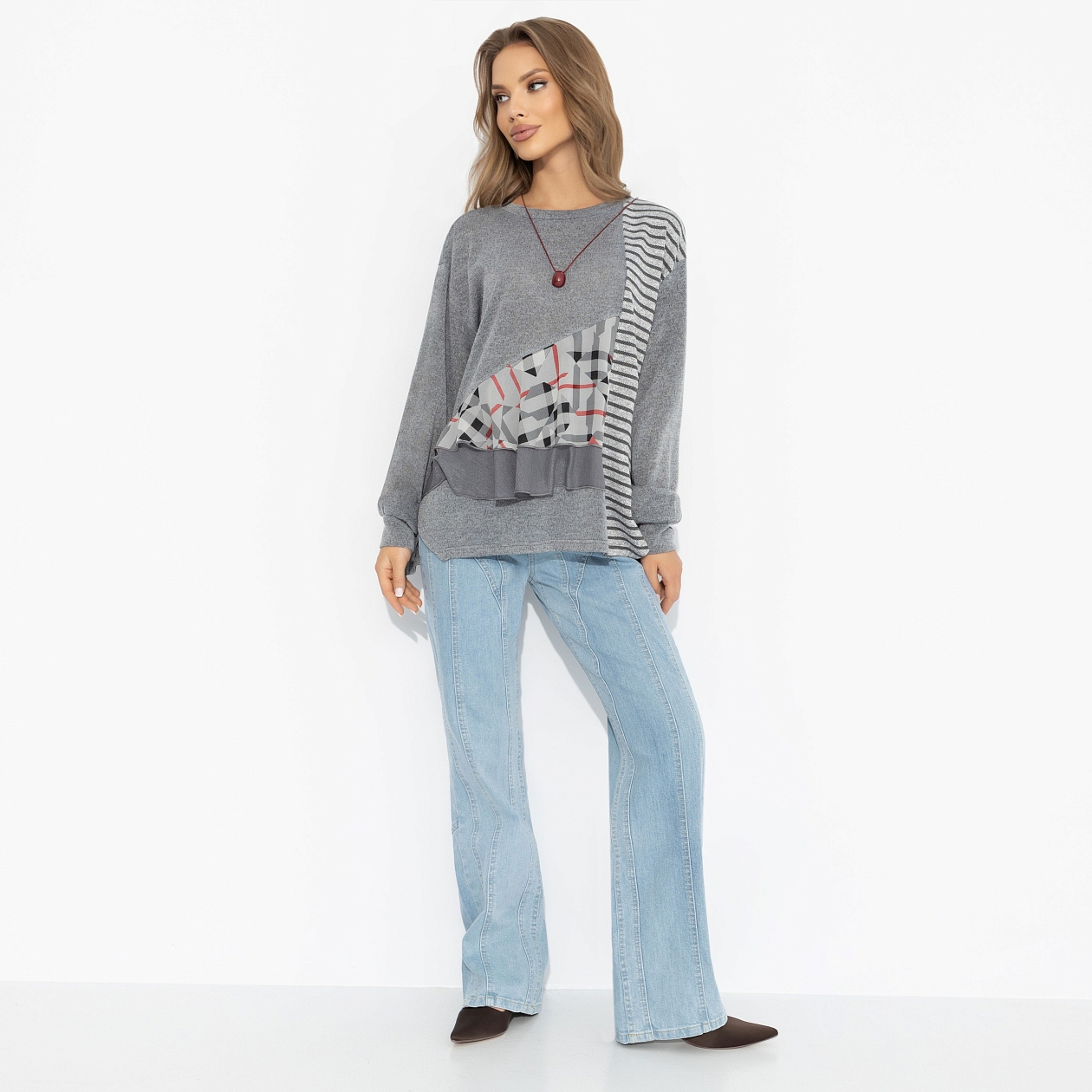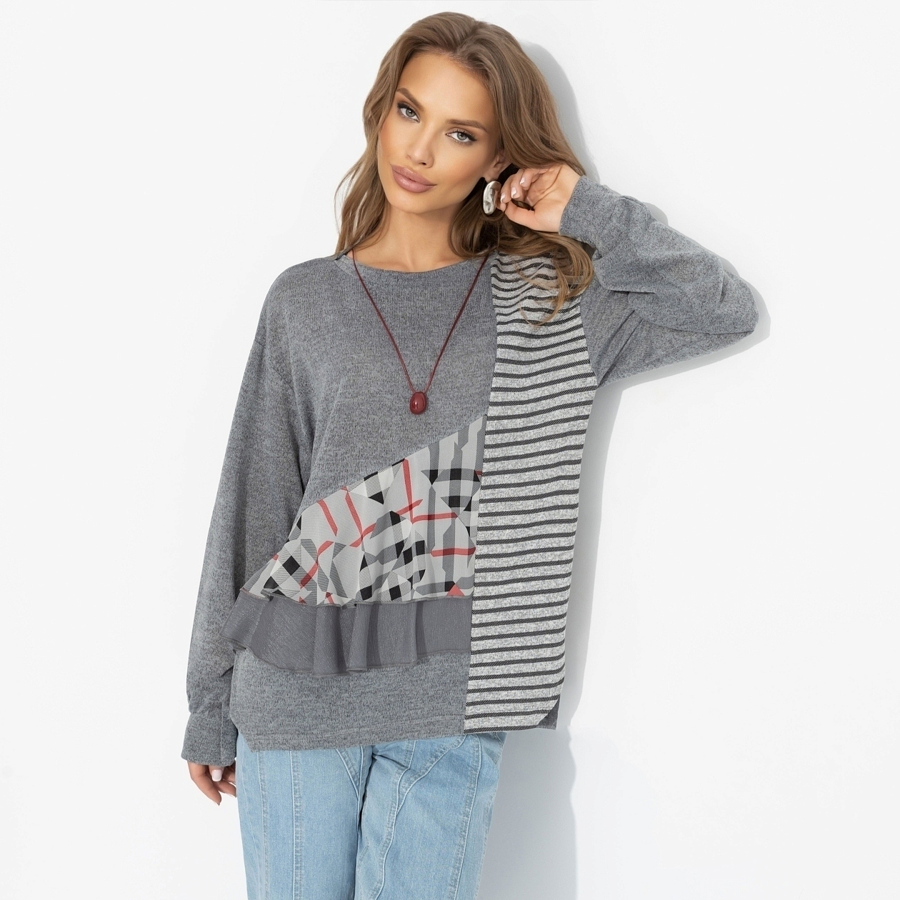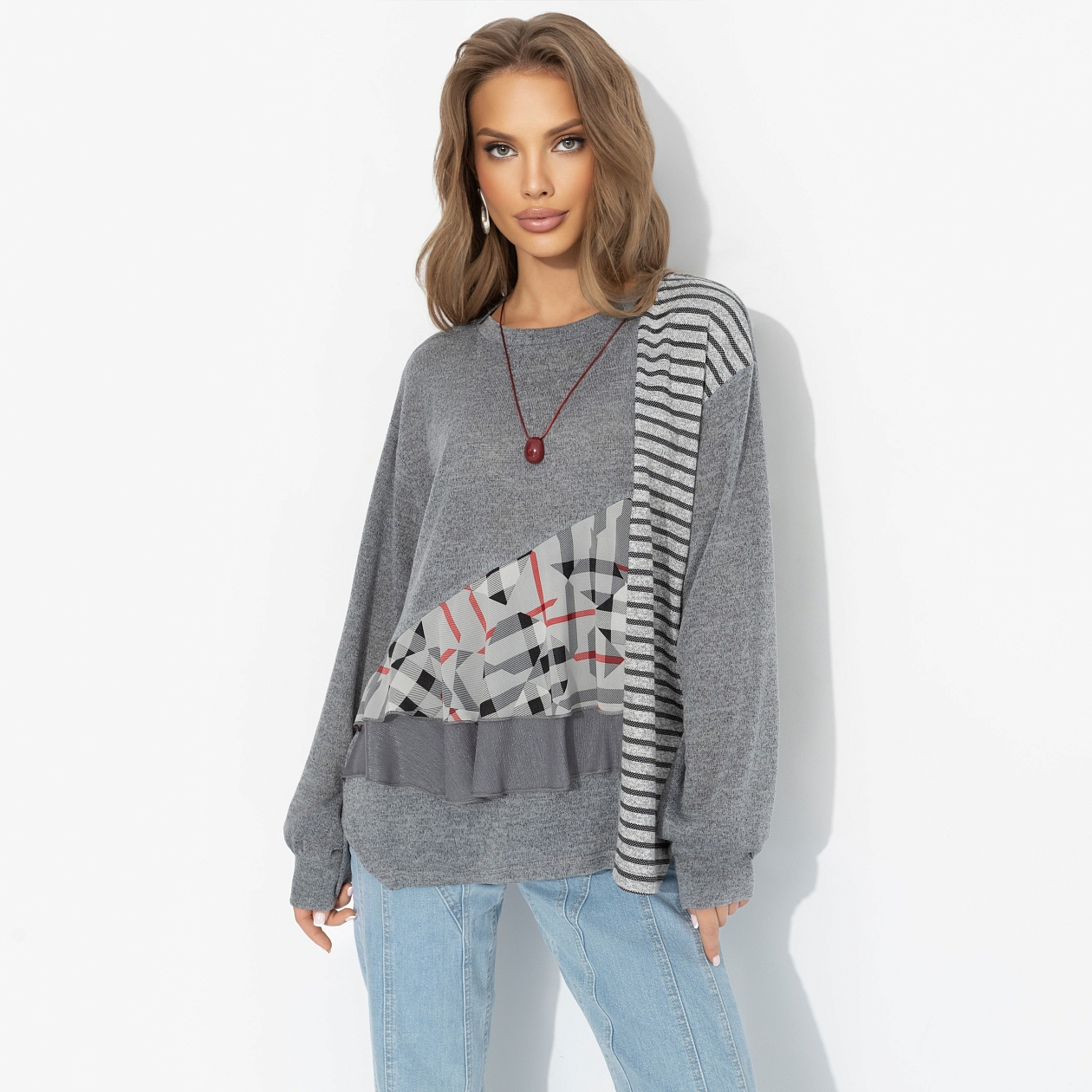 Вивьен Вествуд поставила бы лайк! Контраст фактур, геометрия и немного бунтарства ‒ для тех, кто выбирает свой индивидуальный стиль. Свобода, индивидуальность и британский шик в каждом движении. Свитшот из трикотажа с вставками из шифона и необычным дизайном. Лёгкий оверсайз, комфортная посадка, не мнётся. Оценят поклонницы экспериментов и продуманных деталей!
