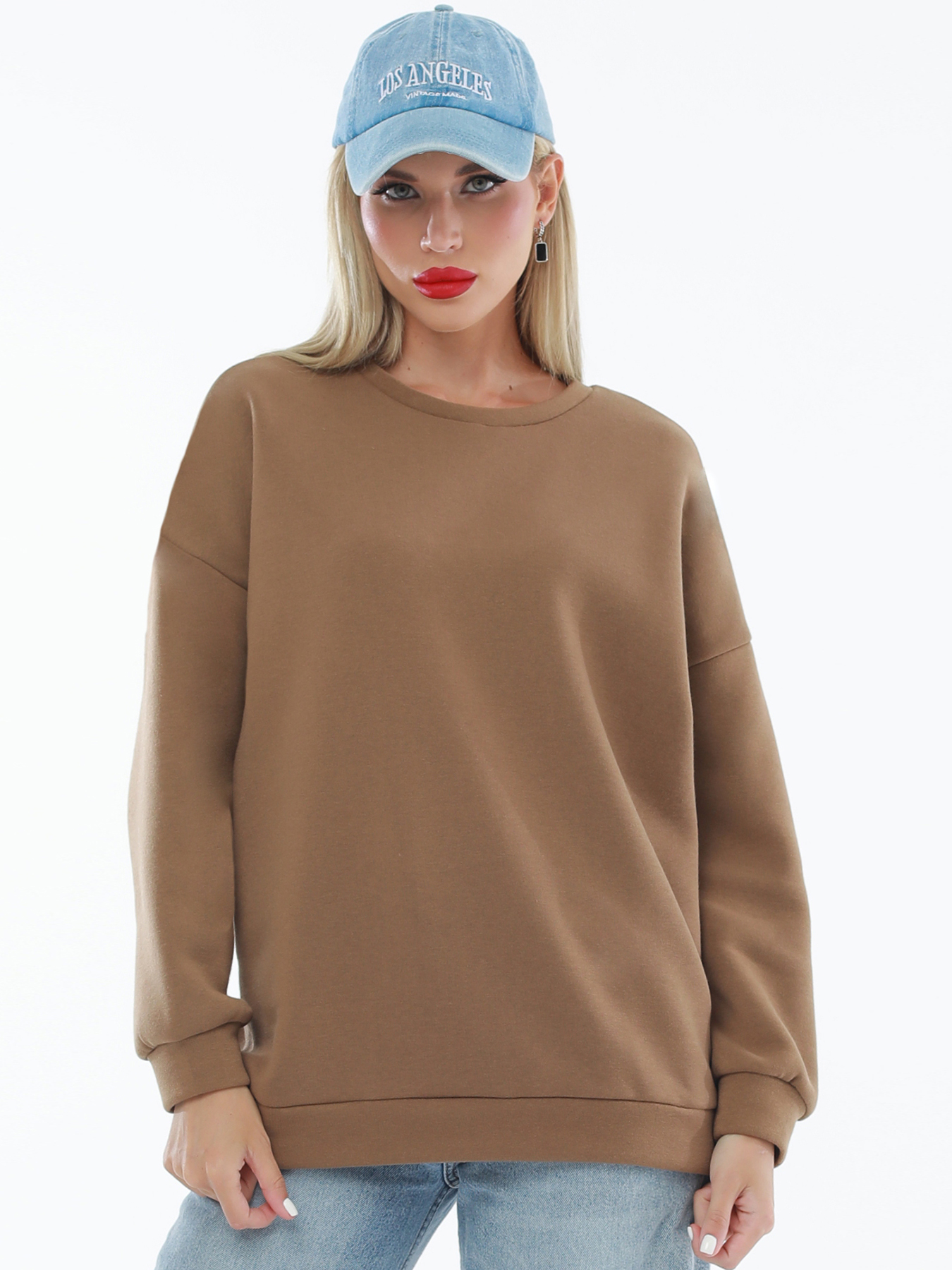 Однотонный свитшот оверсайз — уютная базовая модель, которая прекрасно дополнит как повседневные, так и спортивные образы. Свободный фасон прекрасно смотрится на любой фигуре, скрывает недостатки и дарит ощущение комфорта. Круглый вырез, длинные рукава с манжетами и широкая резинка по низу — элементы классической толстовки, которые делают ее универсальной. Теплый свитшот из футера не только позволит составить множество стильных осенне-зимних нарядов, но и согреет в холодный сезон. Сочетайте модель с леггинсами, брюками и джинсами, высокими сапогами или грубыми ботинками. Свитшот оверсайз также можно надевать поверх платьев, чтобы получился модный образ в стиле спорт-шик. Чтобы изделие радовало вас красотой и качеством не один сезон, рекомендуется стирать его в деликатном режиме при температуре до 30 градусов.