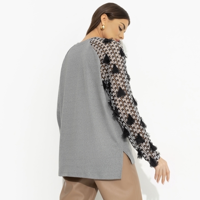 Первая корпоративная вечеринка на новой работе? Важно быть собой, не преувеличивая и не преуменьшая свои достоинства. Лаконичный стиль, отражающий твою натуру – свитшот CHARUTTI. Просто и со вкусом. Свитшот классического кроя. Ассиметричный крой. Один рукав выполнен из кружева с объемным декором. Свитшот хорошо смотрится в заправленном виде и навыпуск.