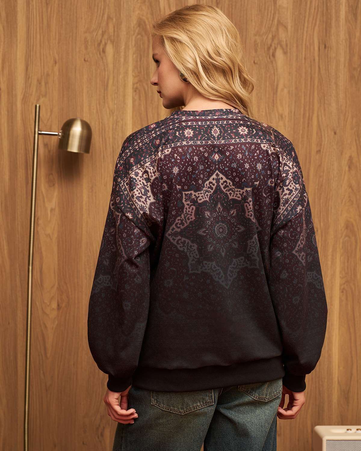 Cвитшот, вдохновленный эстетикой советских времен, сочетающий уютные мотивы традиционного русского быта и современные дизайнерские решения. Центральным элементом изделия является яркая картина советского ковра с характерными орнаментами, наполненная теплыми красками и четкими линиями, придающая вещи неповторимый шарм.