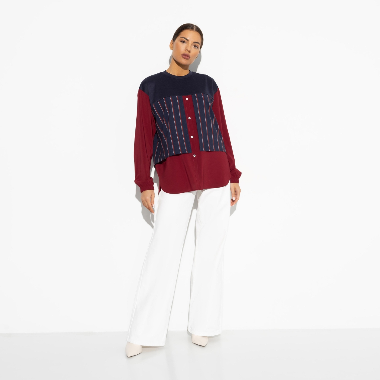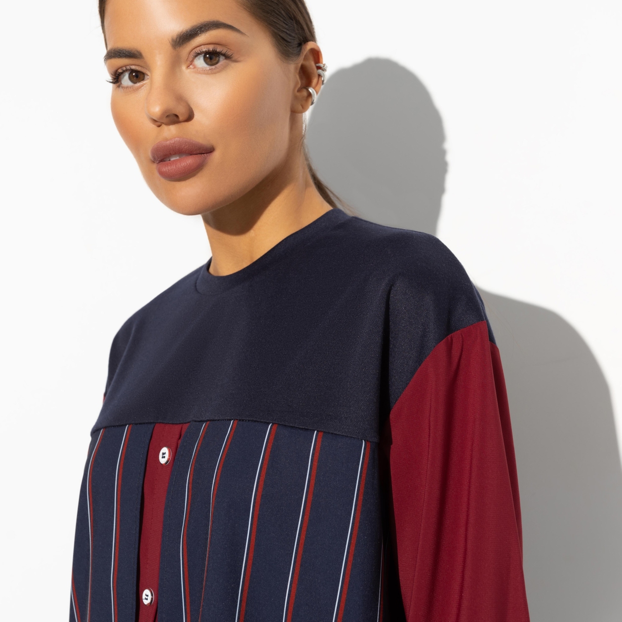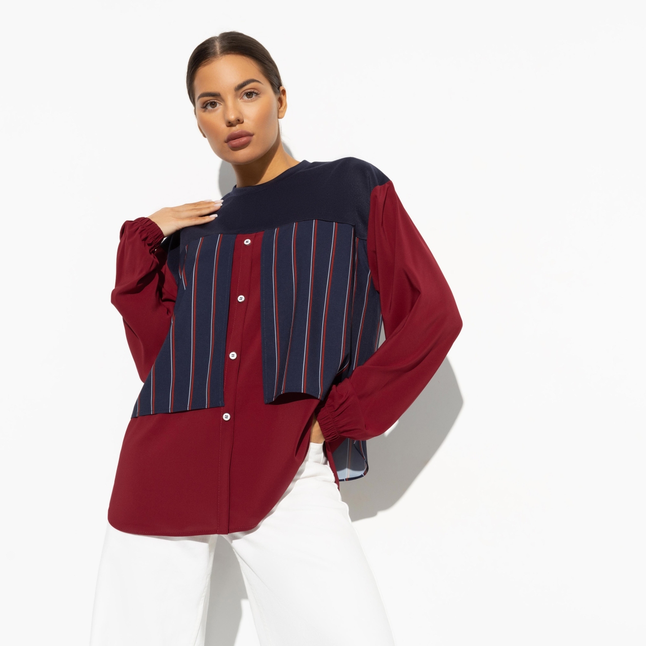 Большая кружка горячего глинтвейна на террасе – отличная идея. Несмотря на холодные вечера, тебя греет осознание своей неотразимости. В свитшоте в цвете красного вина ты смотришься особенно хорошо. Свободный крой. Длина изделия до середины бедра. Пуговицы декоративные.