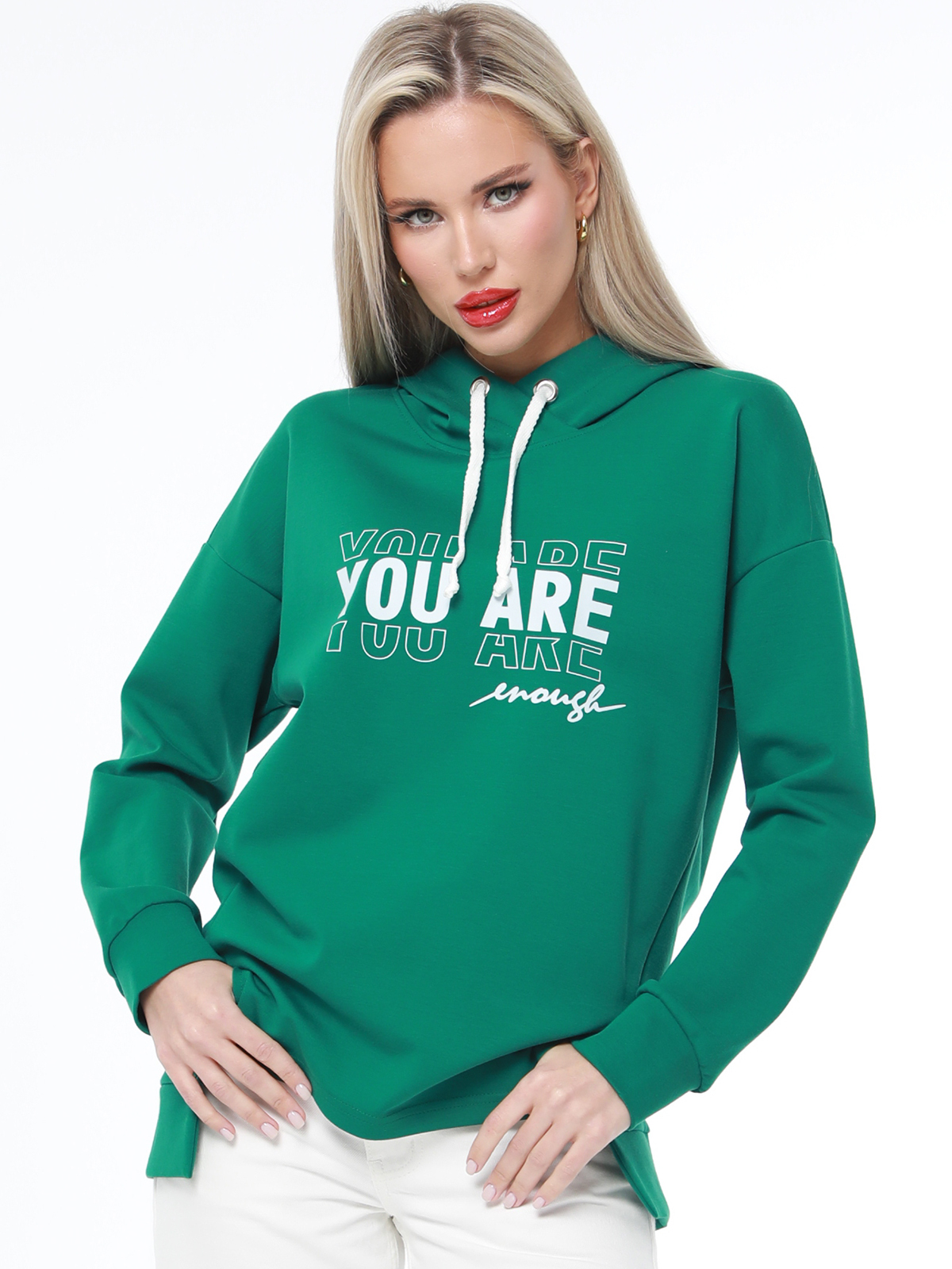 Этот модный и практичный свитшот выполнен из качественного трикотажа зеленого цвета, который подходит для носки в любое время года. Свитшот имеет длинные рукава и удобный капюшон, который защитит Вас от непогоды и придаст Вашему образу оригинальности. Отсутствие застежки обеспечивает комфорт и легкость в движении. Сочетайте этот универсальный свитшот с джинсами, леггинсами или спортивными брюками для создания модных и удобных образов на каждый день. Благодаря своей прочности и простоте в уходе (деликатная стирка при 30 градусах), свитшот от DStrend прослужит Вам долго и сохранит свой первозданный вид.