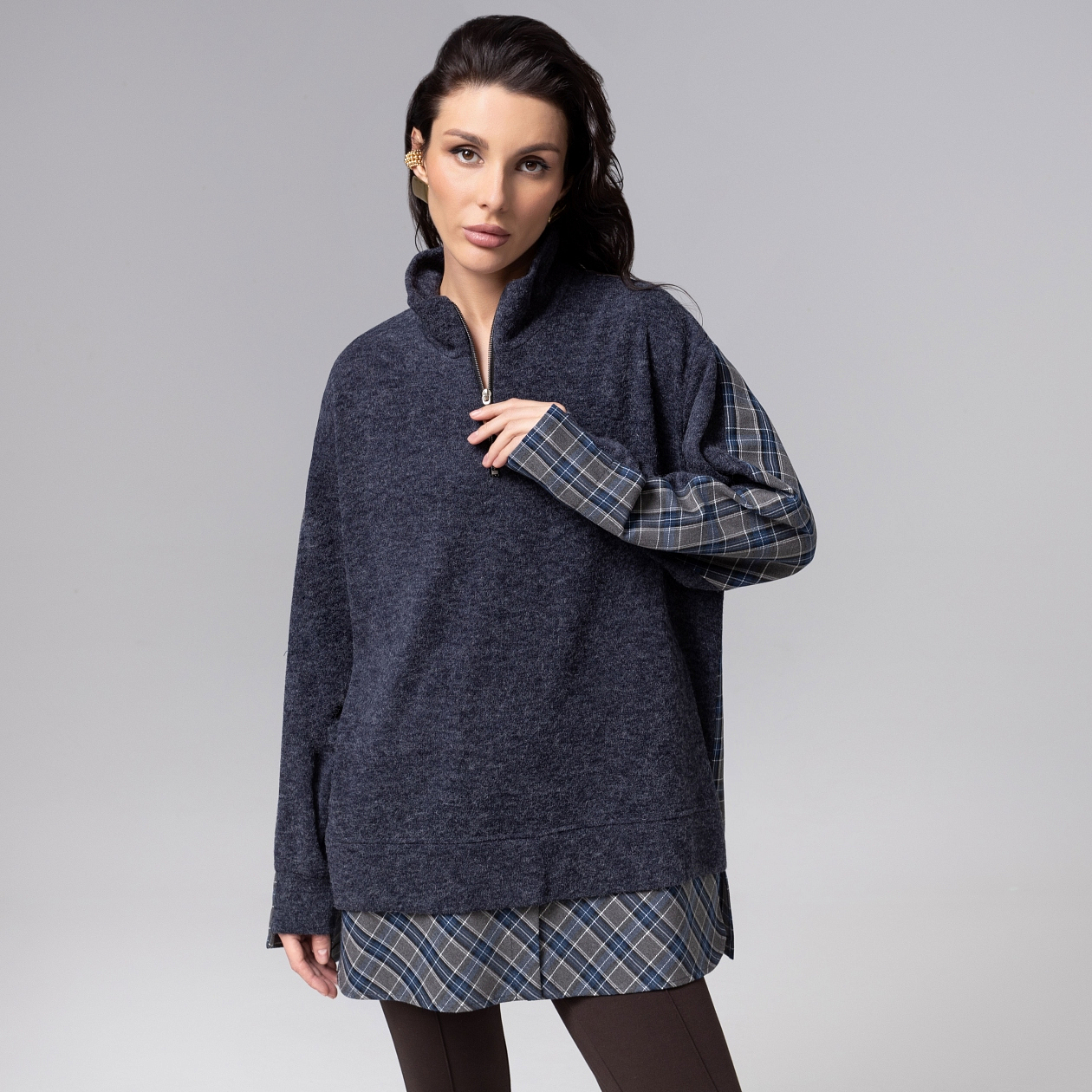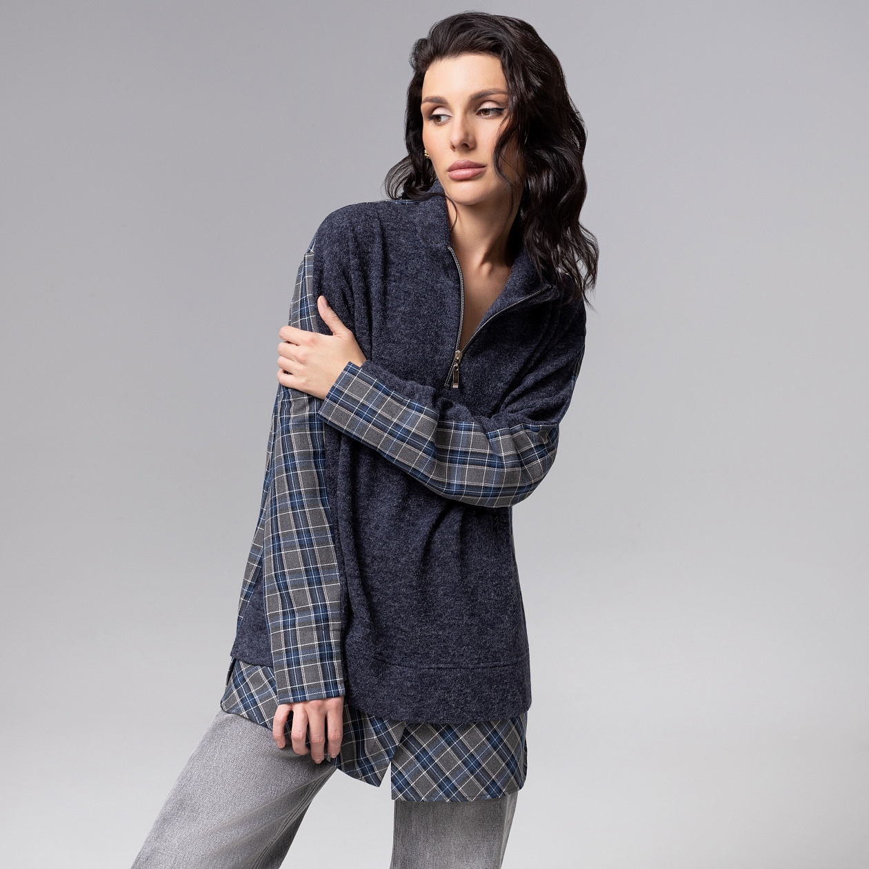 Зачем тратить время на сложные комбинации, если мода уже всё придумала? Свитшот будто подшутил над многослойностью: одна деталь – и у вас готов безупречный ансамбль «с рубашкой». Он работает за вас: стильно и остроумно. Продуманный крой изделия и мякгий трикотаж обеспечивают идеальную посадку на любом типе фигуры.