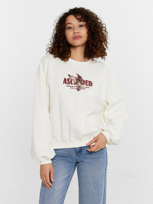 Свитшот женский кремовый с принтом