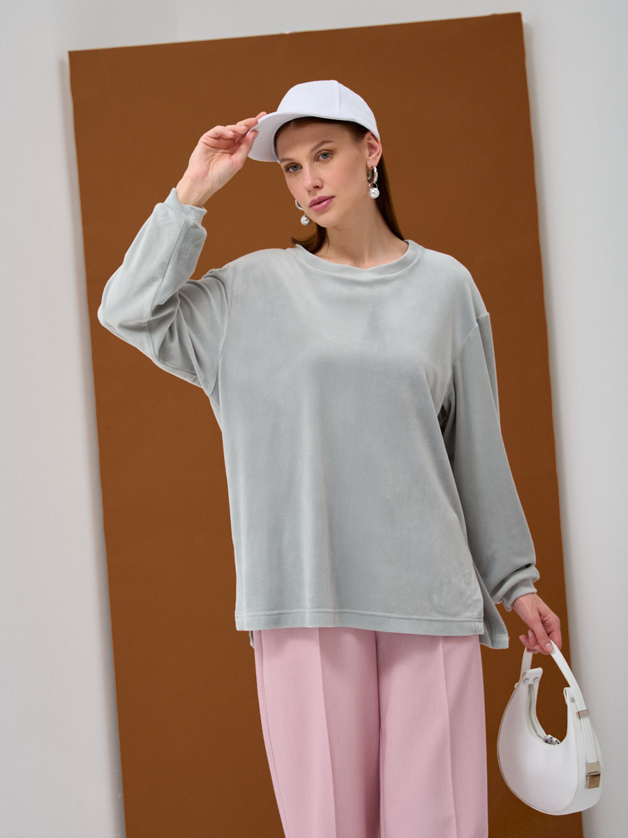 Представляем вашему вниманию ключевую позицию для расширения ассортимента вашего бутика – стильный и невероятно комфортный женский свитшот оверсайз. Созданный российским производителем TANTINO, этот свитшот воплощает экспертный подход к конструированию и пошиву, предлагая вашим клиентам изделие премиального качества с полным циклом производства.Идеальный выбор для оптовых закупок:Превосходный материал: Свитшот выполнен из высококачественного мягкого велюра на трикотажной основе. Эта ткань дарит исключительную мягкость и комфорт при носке, приятна к телу и при этом отличается долговечностью и простотой в уходе.Актуальный крой оверсайз: Свободный силуэт обеспечивает максимальное удобство и является одним из ведущих трендов в современной моде, что гарантирует востребованность модели среди ваших покупателей.Элегантные детали: Модель имеет классический круглый вырез горловины и стильную спущенную линию плеча. Длинный прямой рукав и функциональные разрезы по боковым швам добавляют динамичности и легкости образу.Универсальность применения: Этот свитшот легко интегрируется в разнообразные гардеробы – от уютной домашней одежды до стильных комплектов для прогулок, путешествий и повседневной городской жизни. Он станет незаменимой частью базового гардероба.Инвестируйте в качество и стиль, выбирая продукцию, которая соответствует высоким стандартам и отвечает запросам самых взыскательных клиентов. Изделие на модели представлено в 42 размере при росте 175 см. Длина изделия по спинке составляет 75.3 см. Для сохранения безупречного вида рекомендуется машинная стирка при 30 градусах.