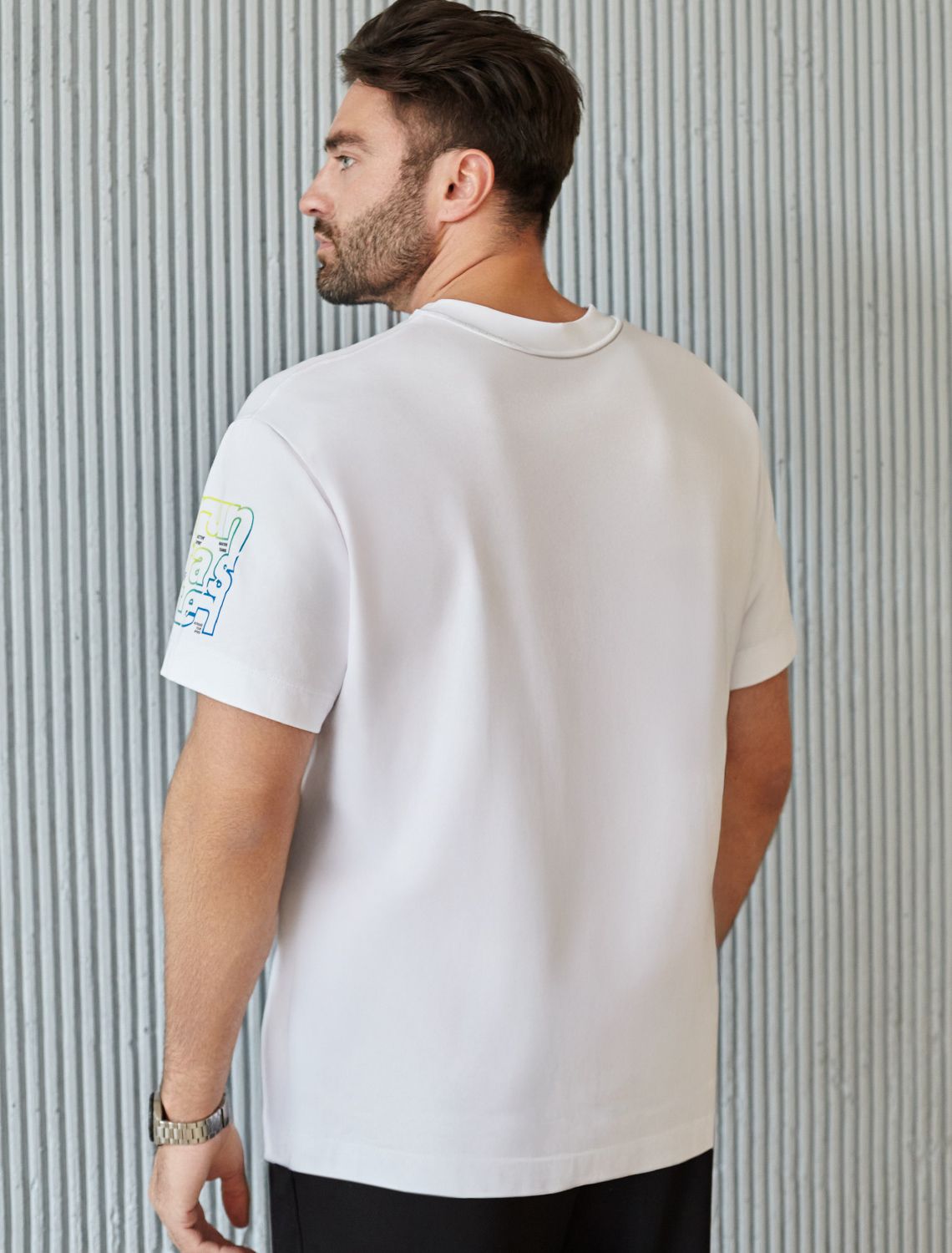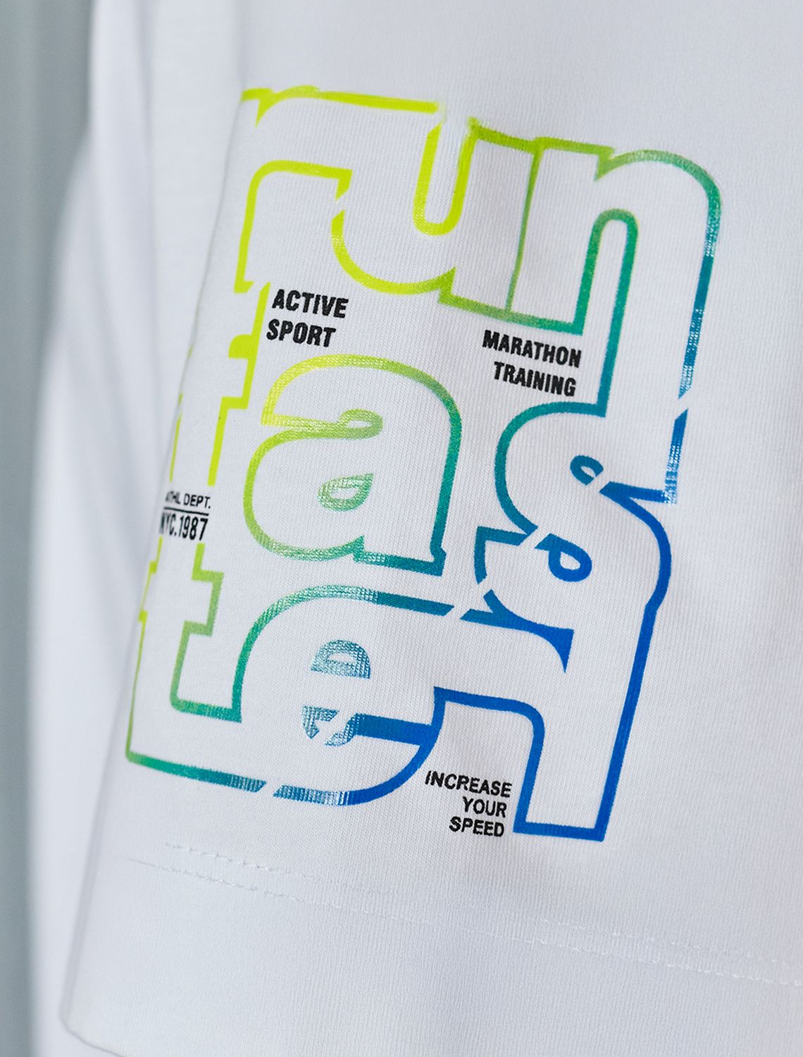 Перевод принта: Run faster, active sport, marathon training, alt dept NYC 1987 - беги быстрее, активный спорт, подготовка к марафону, спортивный колледж Нью-Йорк 1987. Футболка свободного кроя выполнена из премиального хлопка. Авторский принт нанесен красками с устойчивым покрытием. Благодаря эластану, носить изделие очень комфортно, и оно сохранит свой безупречный вид в течение долгого времени. На рукаве нашивка из эко-кожи с логотипом бренда.