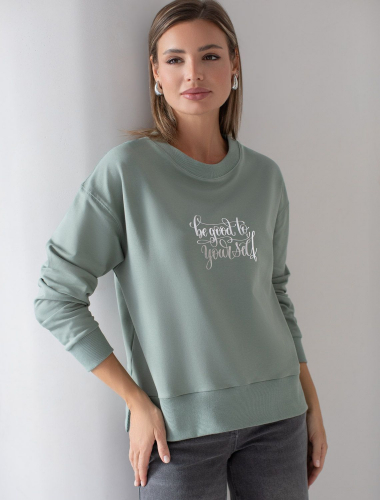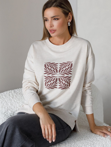 Свободный свитшот с принтом и разрезами из эластичного футера двухнитки без начеса