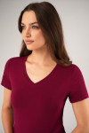 Хлопковая футболка для женщин станет отличным решением для летнего отдыха на природе. Футболка баклажанового цвета подойдет для прогулок.