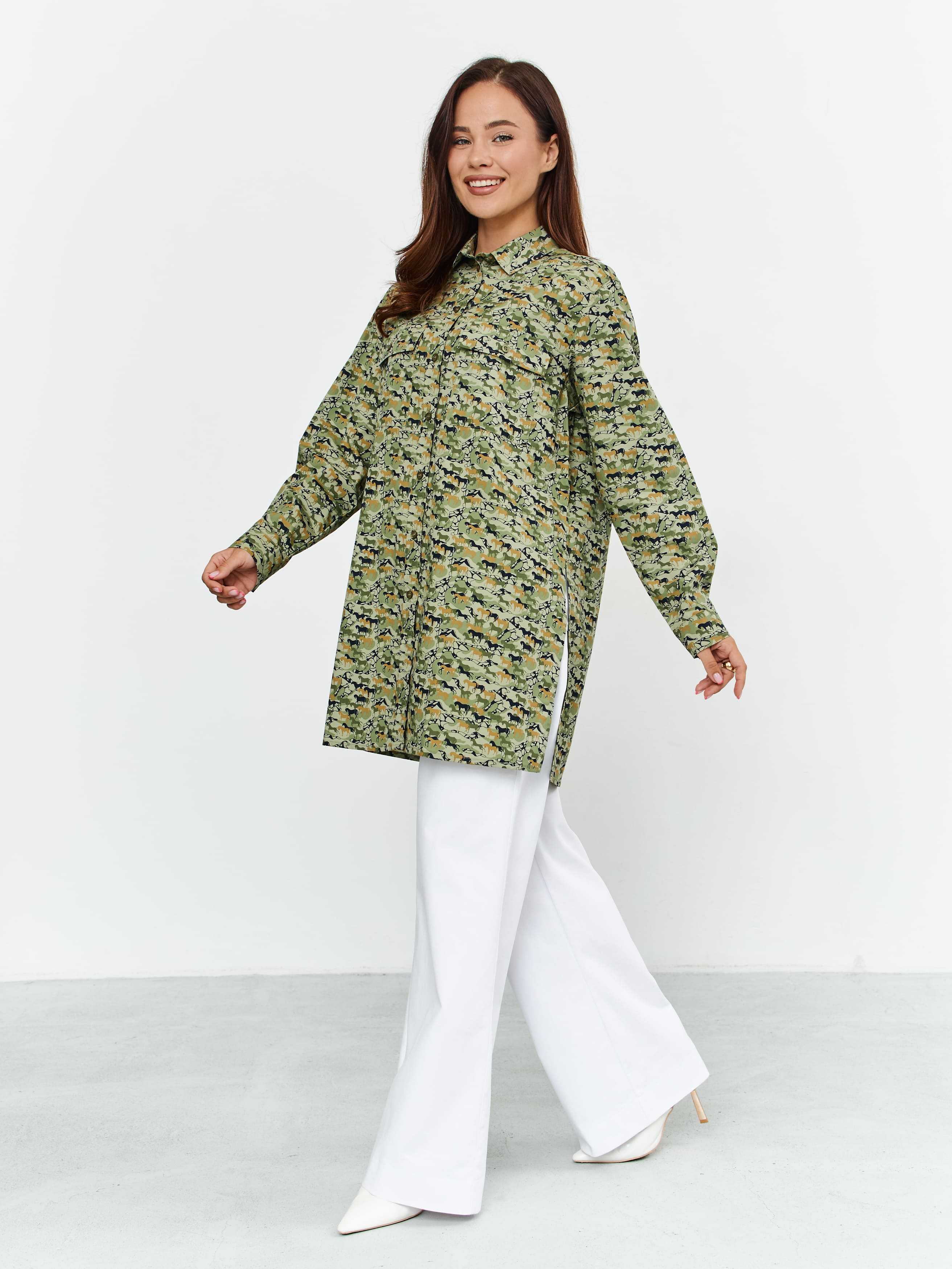 Блузка женская дл. рук. T-lab TL-BT-0026-JF-хаки.принт