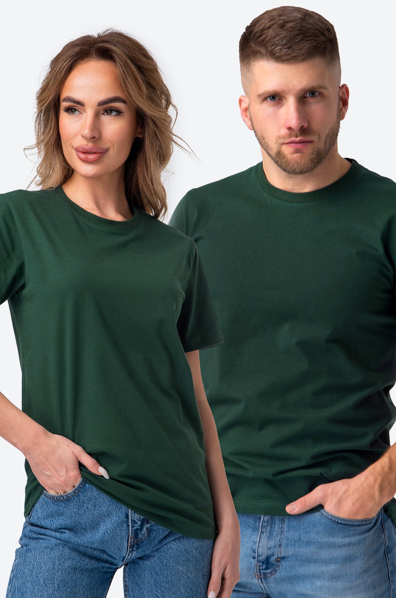 Одно..показатьтонная футболка унисекс – тот случай, когда не нужно придумывать, что надеть. Футболка темно-зеленого цвета цвета универсальна: она подходит и для женщин, и для мужчин. Классическая модель с коротким рукавом выполнена из натурального 100% хлопка.