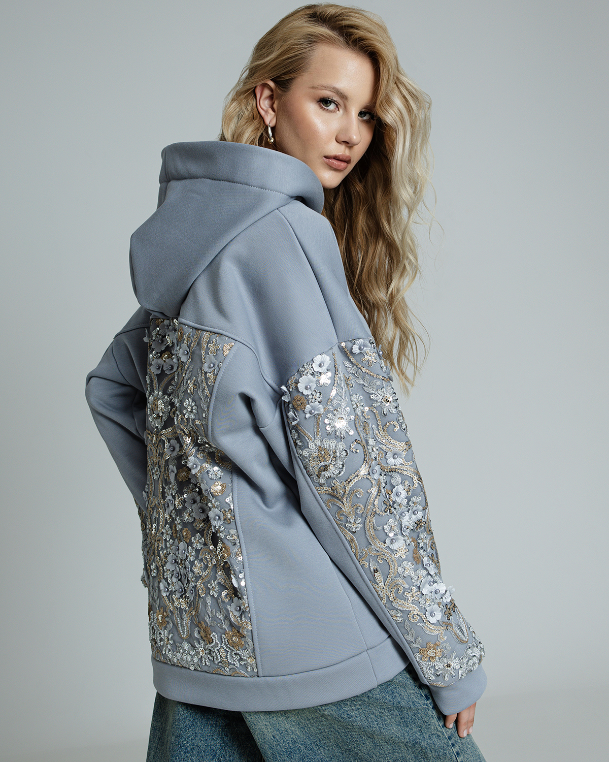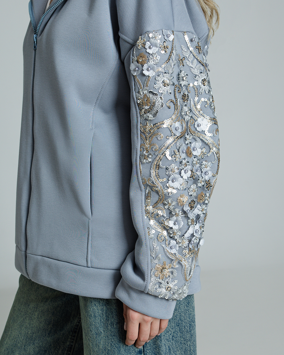 Толстовка с вышивкой, пайетками и стразами TC013