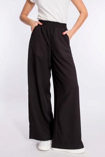 Спортивные брюки из футер петли с лайкрой. Зауженный покрой к низу, пояс на резинке, по бокам расположены карманы. Через петли в поясе продернут шнур. На передних частях манжет расположены нашивки.