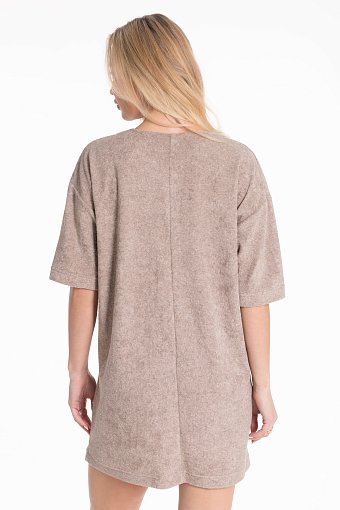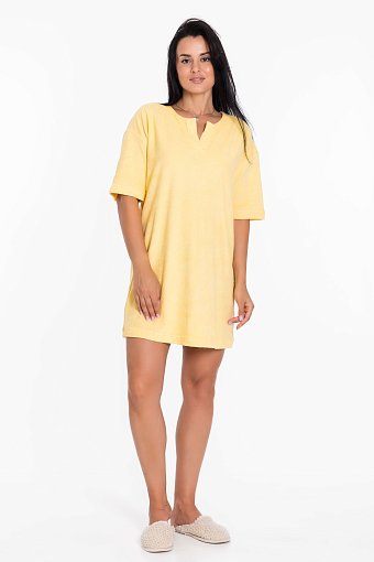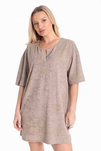 Женская туника из однотонной махры — отличный выбор для создания комфортного образа. Туника имеет прямой силуэт, который подходит для разных типов фигур, и спущенную линию плеча, что придаёт модели изысканность. Рукав туники доходит до локтя, что обеспечивает удобство и свободу движений. Вырез дополнен разрезом и оформлен планкой, что добавляет изделию изюминку. Такая туника идеально подойдёт для повседневной носки. Изготовленная из натуральной ткани, туника обеспечит комфорт в течение всего дня.