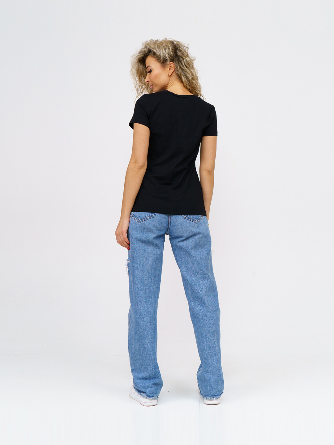 Футболка молодёжная из трикотажного полотна «кулирка с лайкрой» длинной до линии бёдер.Рукав втачной базового покроя, короткий. Горловина обработана планкой. На полочке присутствует печатный рисунок.