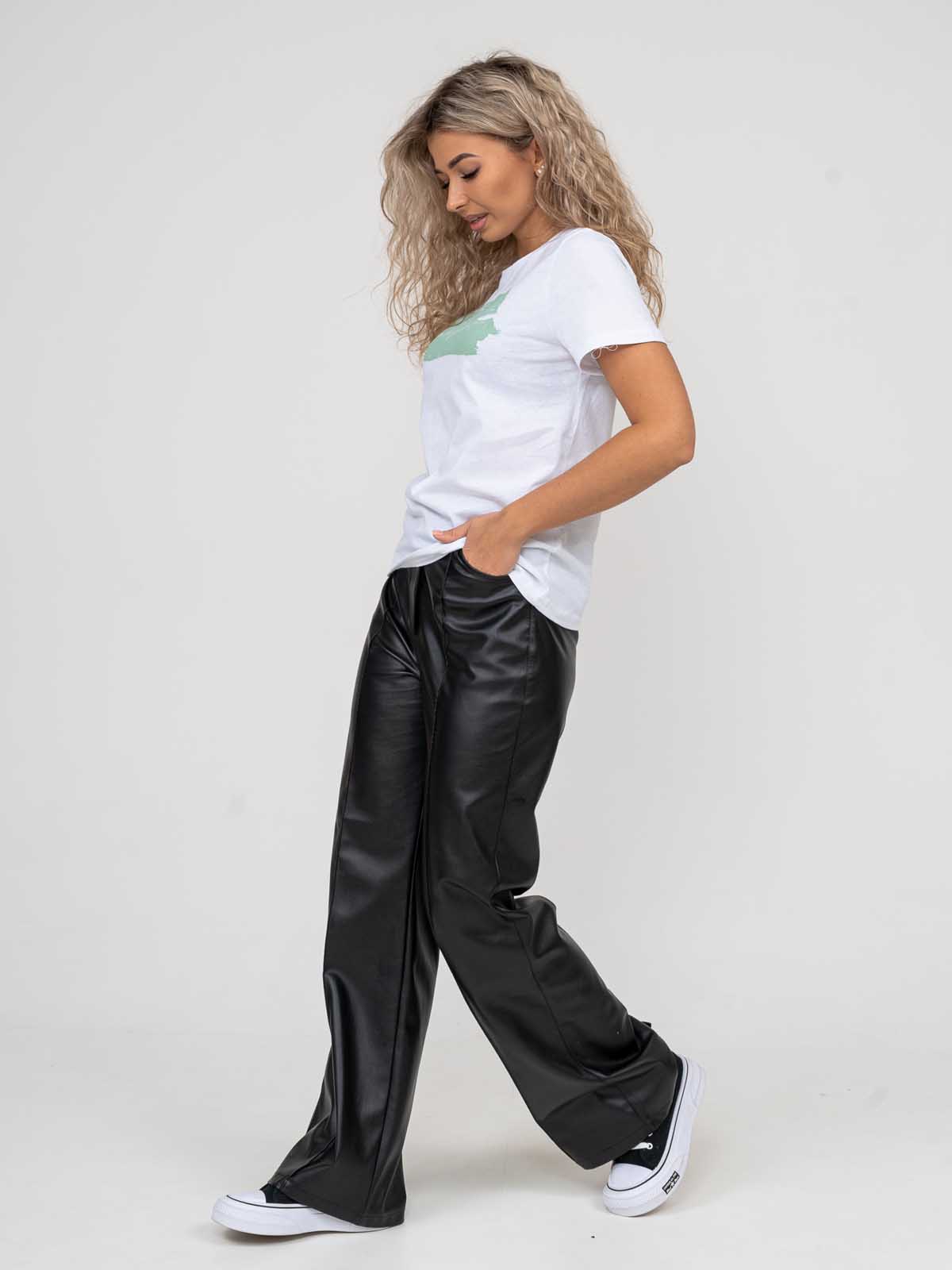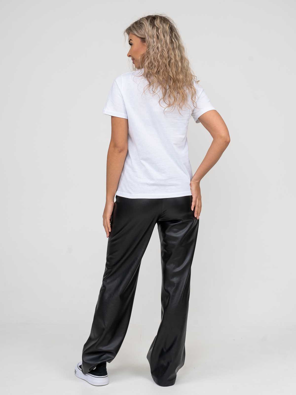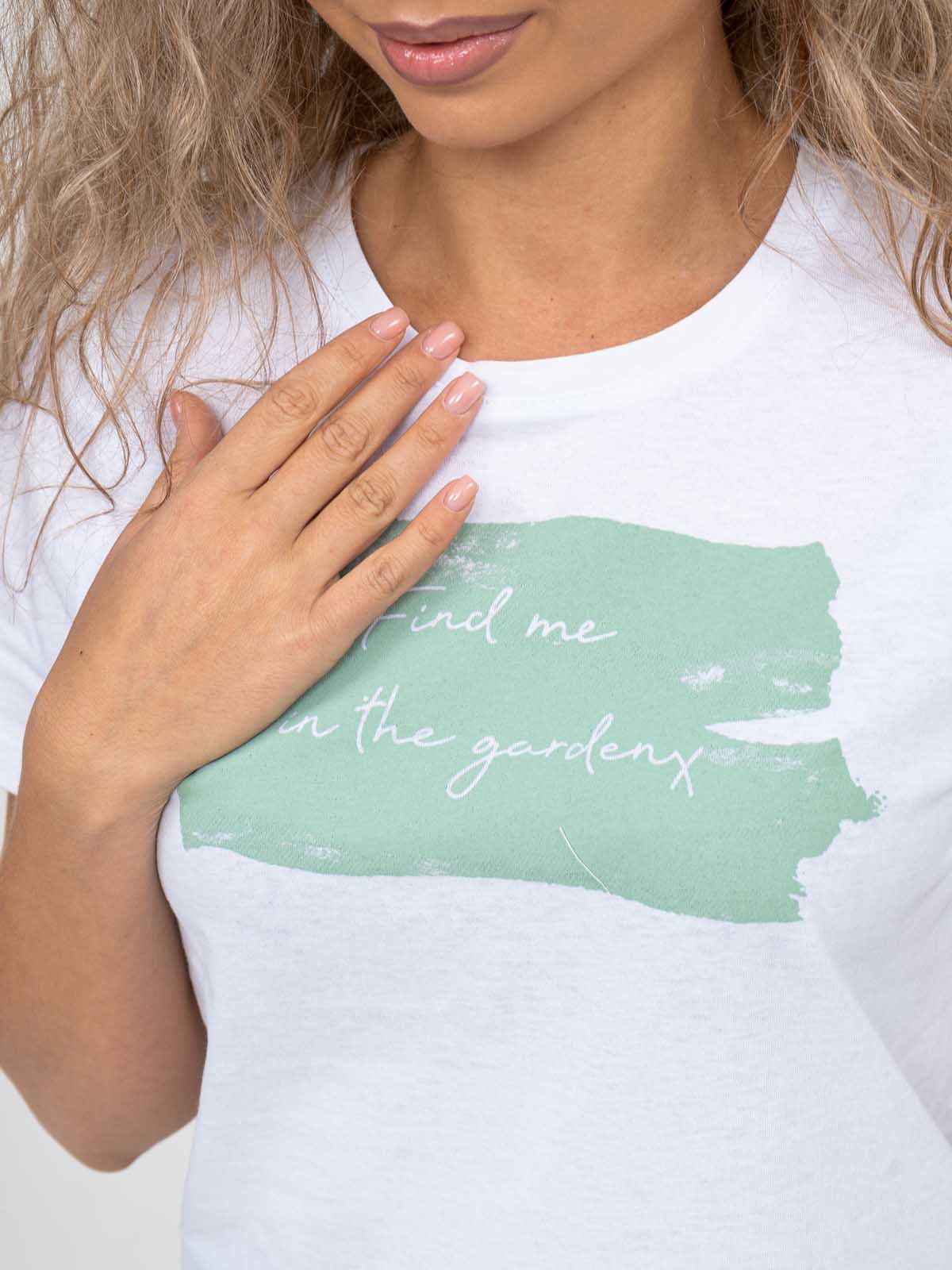 Футболка женская, прямого силуэта с принтом, О-образной горловиной. Рукав короткий, свободный. Футболка выполнена из трикоотажного полотна 100% хлопка.