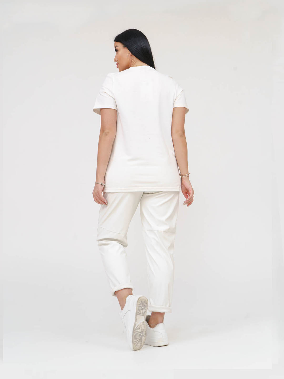 Базовая женская футболка с однотонной печатью из плотного хлопка с добавлением лайкры, не просвечивает. Футболка с коротким рукавом обладает всеми преимуществами: не пилингуется, сохраняет форму, неприхотлива в уходе: можно стирать в машинке на деликатном режиме. Эта футболка из хлопка хорошо сядет на любой тип фигуры.Футболка женская базовая прямого силуэта будет незаменима в вашем гардеробе.