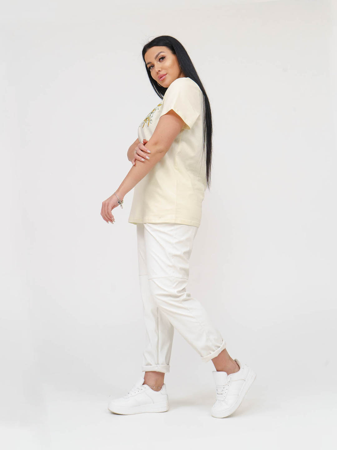 Базовая женская футболка из хлопка, не просвечивает. Футболка с коротким рукавом обладает всеми преимуществами: не пилингуется, сохраняет форму, неприхотлива в уходе: можно стирать в машинке на деликатном режиме. Эта футболка из хлопка хорошо сядет на любой тип фигуры.Футболка женская базовая прямого силуэта будет незаменима в вашем гардеробе.