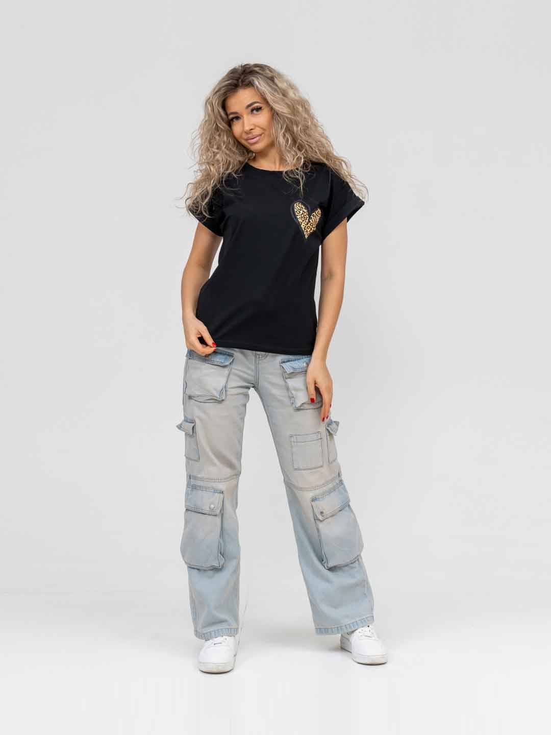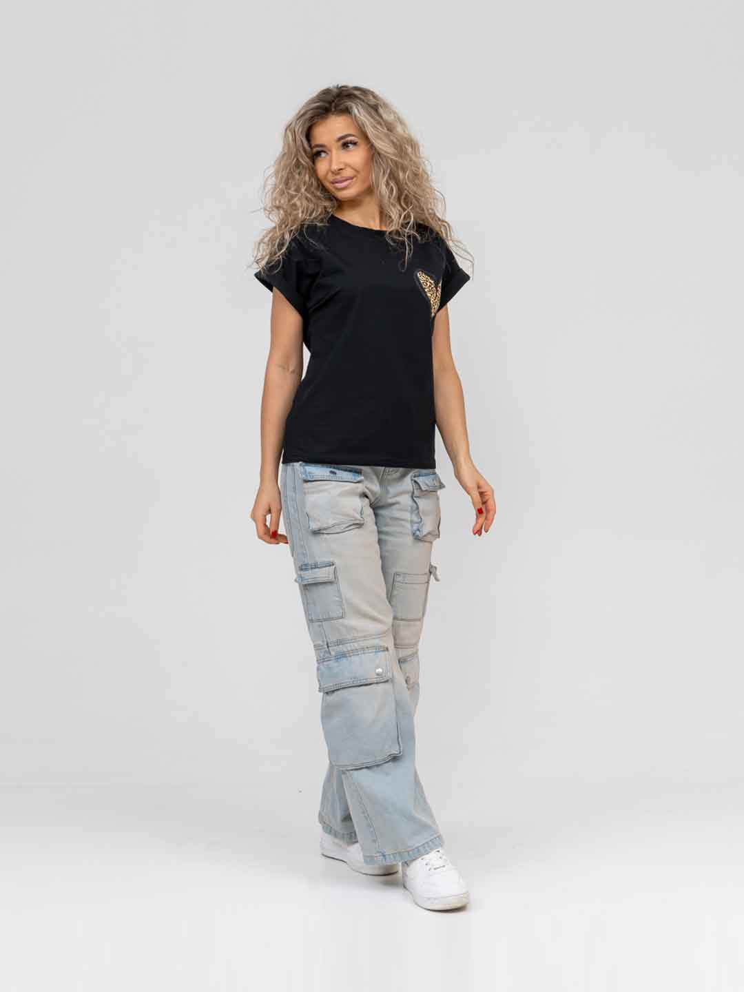 Базовая женская футболка, прямого силуэта, с О-образной горловиной и коротким рукавом. Спереди печать на полочке.