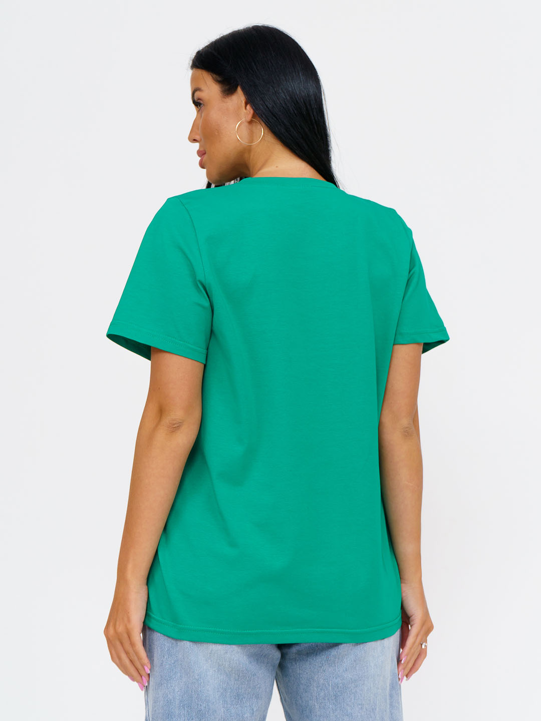 Очаровательная футболка светло-зеленого оттенка - идеальный выбор для тех, кто ценит стиль и комфорт. Ее нежный цвет придаст тебе неповторимый образ, а мягкий материал обеспечит комфорт в течение всего дня. Сочетание красоты и практичности в одной вещи!