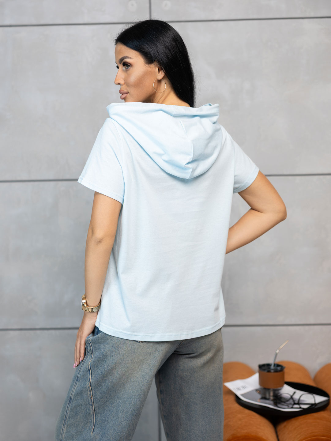 Футболка женская с капюшоном в стиле - Urban. Втачной короткий рукав и печатный рисунок на передней части.