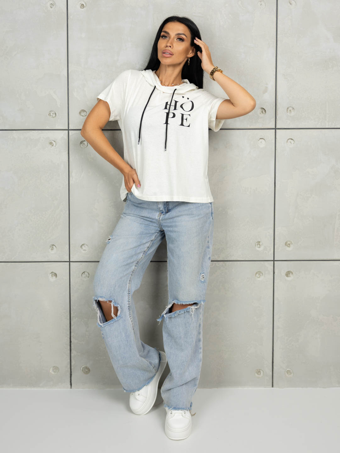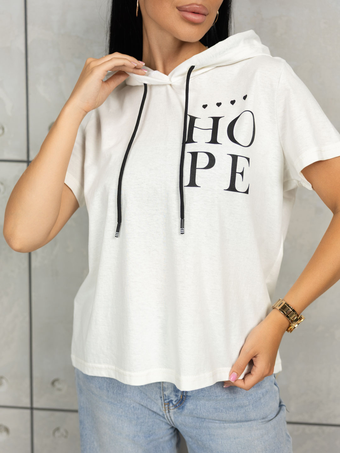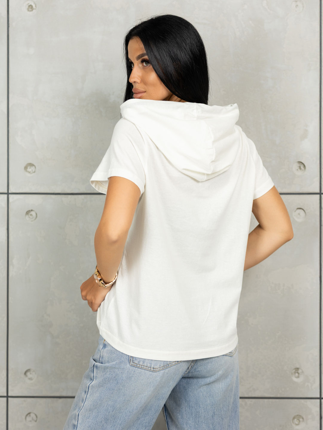 Футболка женская с капюшоном в стиле - Urban. Втачной короткий рукав и печатный рисунок на передней части.