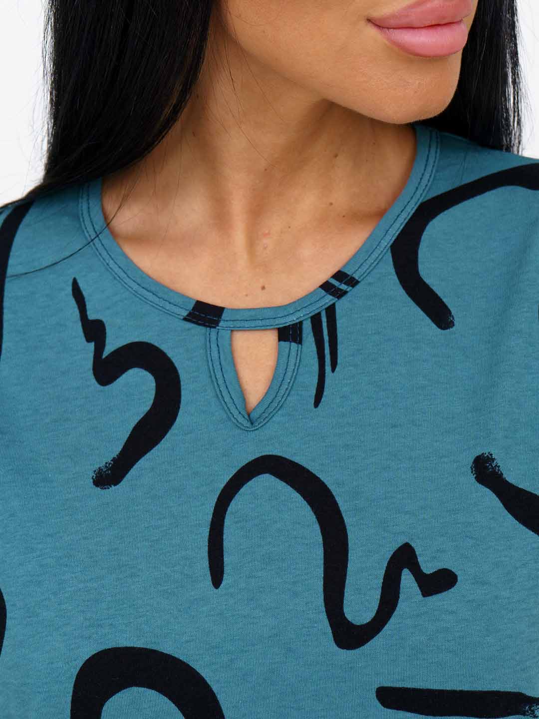 Женская туника из хлопка, выполнена из ткани премиум качества. Длина до уровня бедер - создаст правильный силуэт, рукав 3/4 подчеркнет изящество Ваших рук, а оригинальный вырез горловины привлечет внимание к зоне декольте. Правильный крой подчеркнет талию и подарит Вам ощущение комфорта.