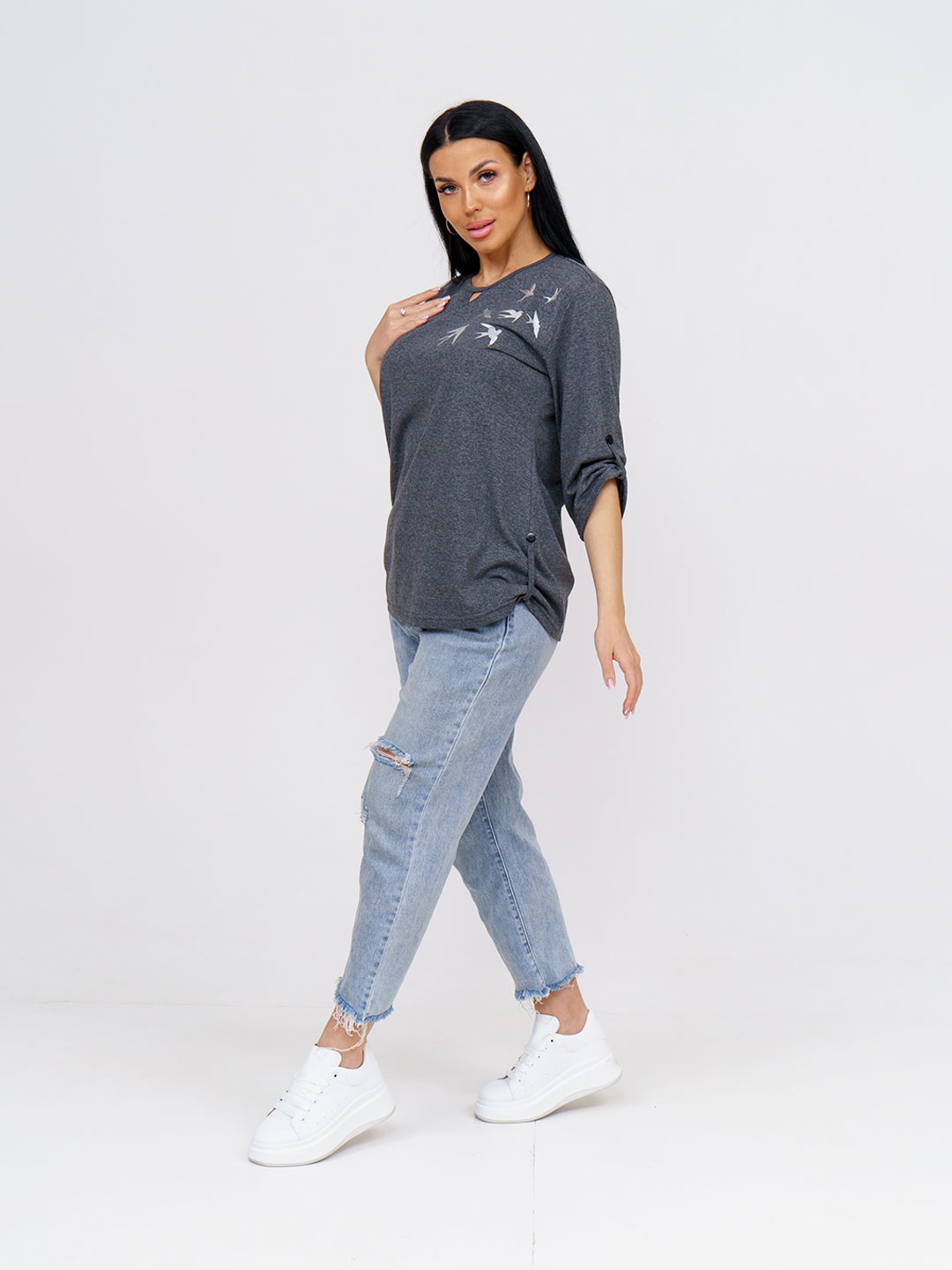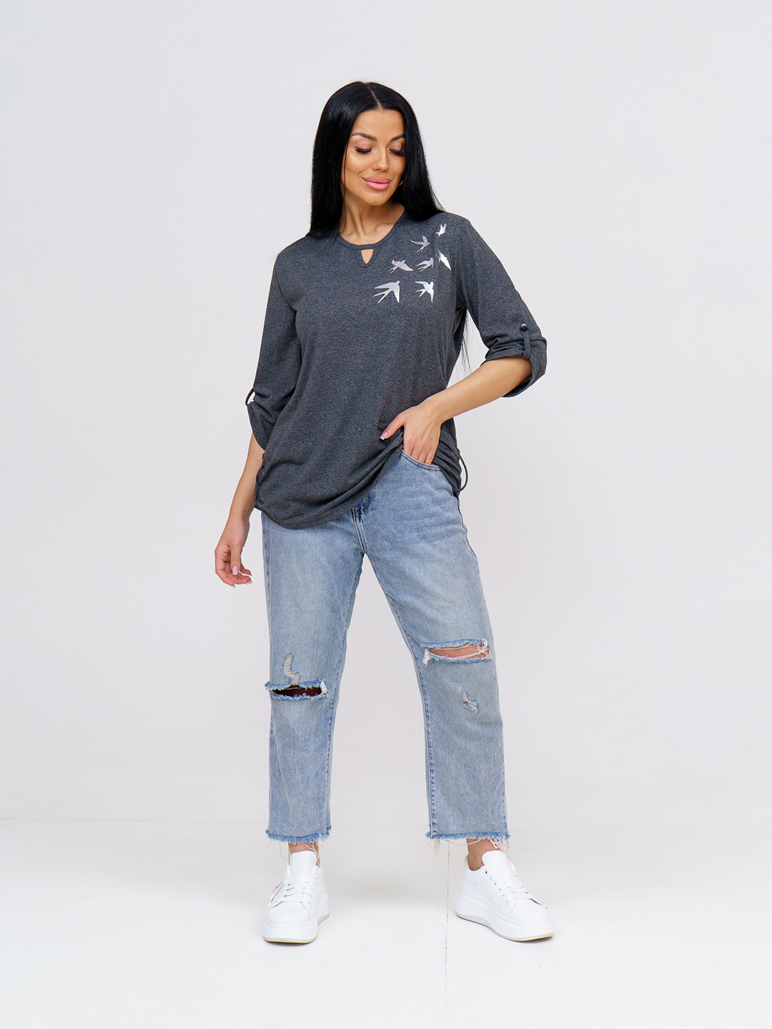 Женская туника из хлопка, выполнена из ткани премиум качества. Длина до уровня бедер - создаст правильный силуэт, рукав 3/4 подчеркнет изящество Ваших рук, а оригинальный вырез горловины привлечет внимание к зоне декольте. Правильный крой подчеркнет талию и подарит Вам ощущение комфорта.