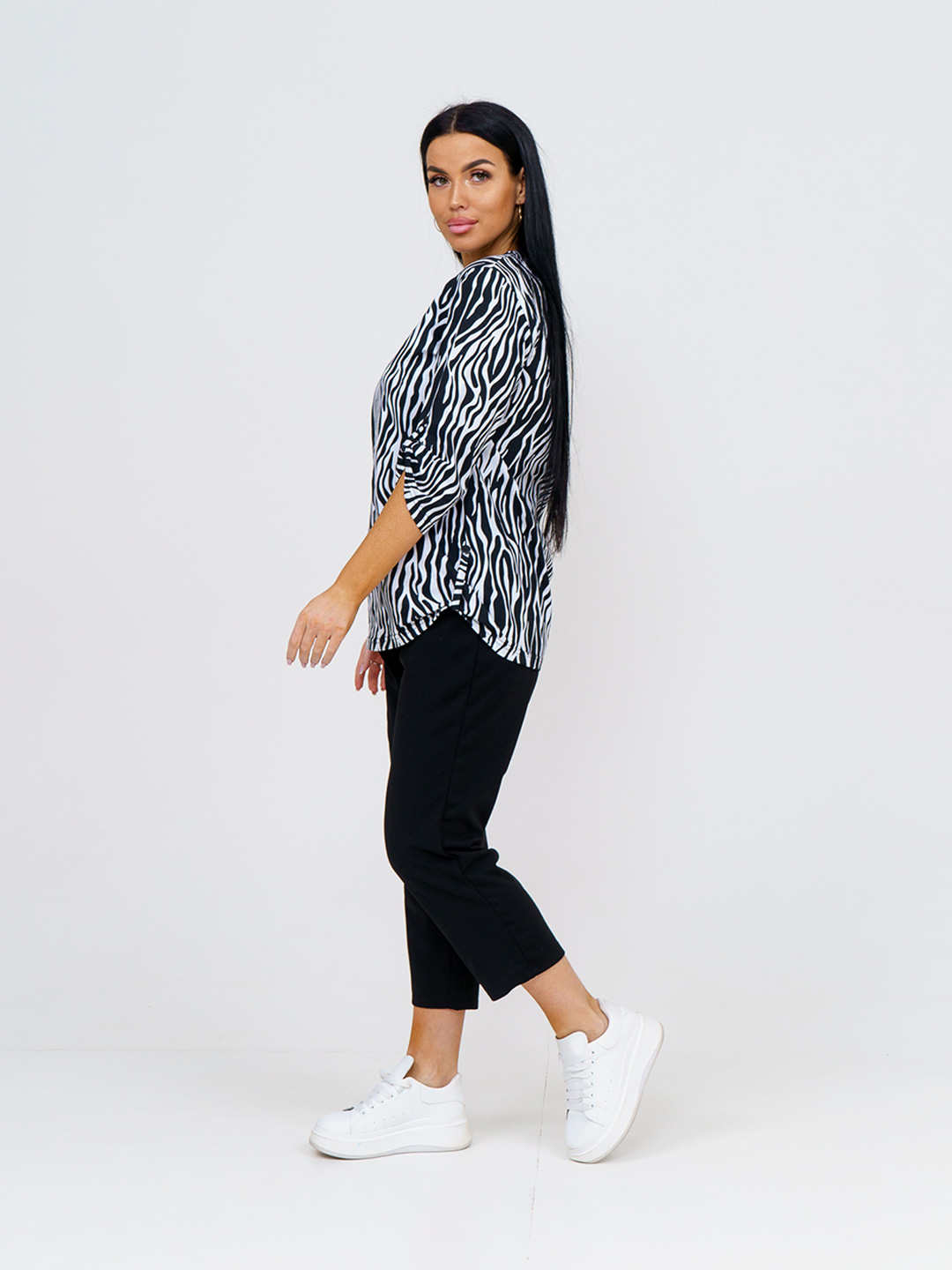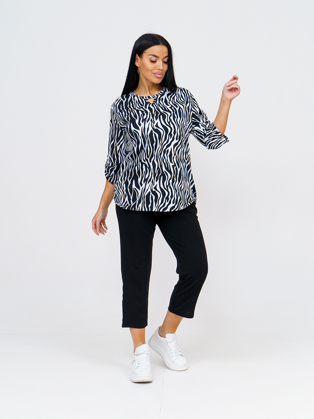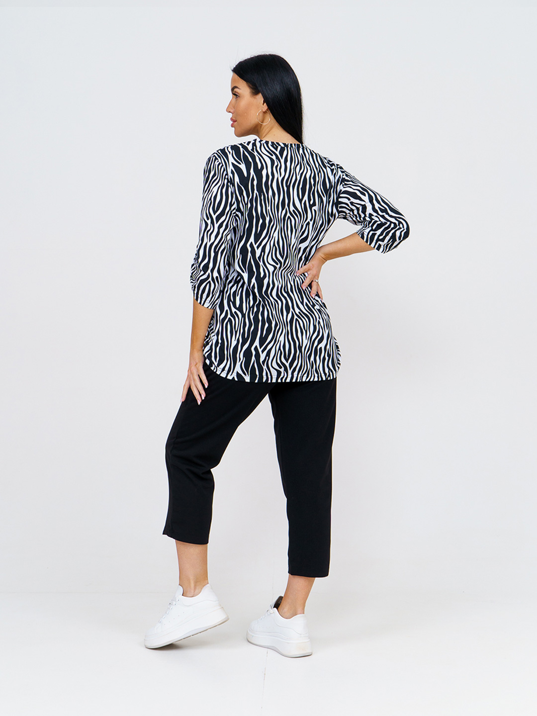 Женская туника из хлопка, выполнена из ткани премиум качества. Длина до уровня бедер - создаст правильный силуэт, рукав 3/4 подчеркнет изящество Ваших рук, а оригинальный вырез горловины привлечет внимание к зоне декольте. Правильный крой подчеркнет талию и подарит Вам ощущение комфорта.
