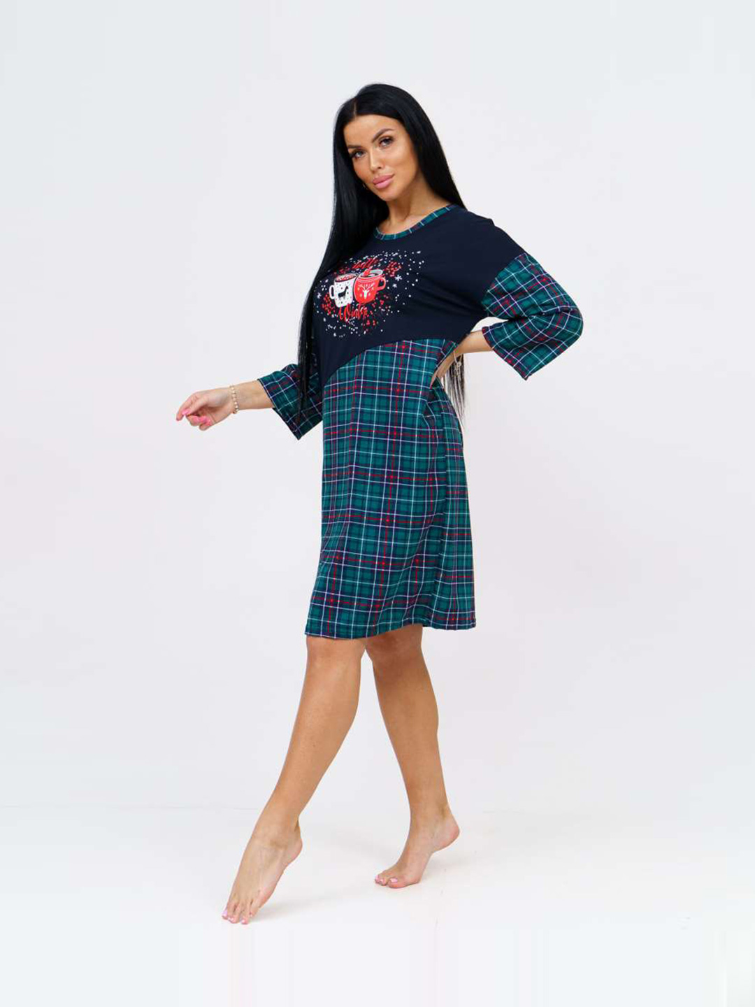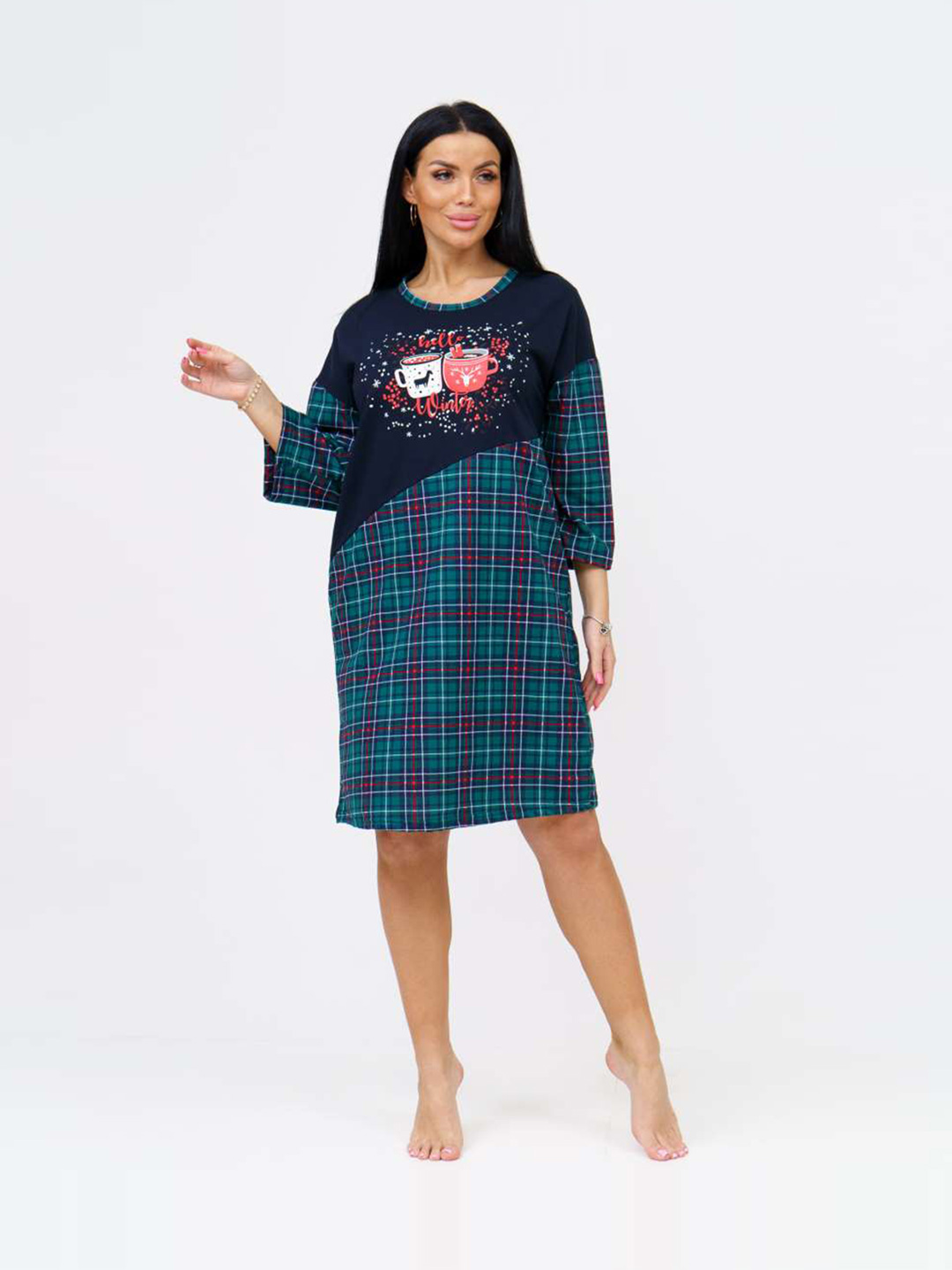 Новогодняя туника из 100% хлопка, уютная и мягкая. Милый новогодний принт не оставит никого равнодушным. Туника с яркой новогодней печатью поднимет Вам настроение. Туника отлично подойдет, как для повседневной носки в предновогодние дни, так и для тематической фотосессии.