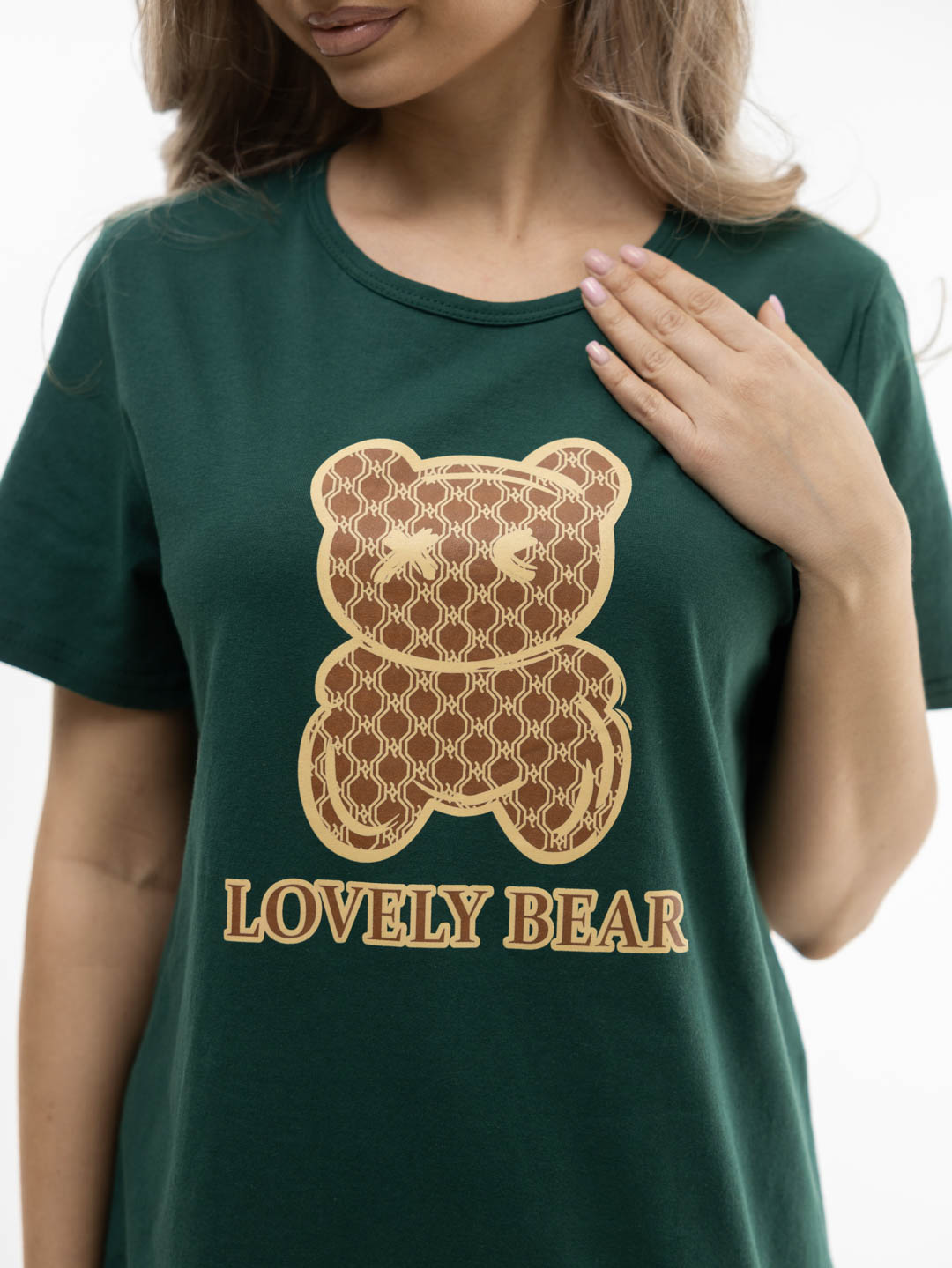 Туника женская, длиной выше уровня колена, выполненная из мягкого, приятного к телу трикотажного полотна. Платье имеет короткий втачной рукав и округлую горловину. На передней части красивый печатный рисунок.