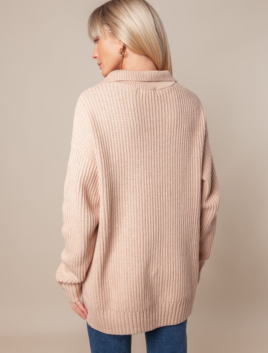 Теплый свитер из хлопка с акрилом и золотистой молнией