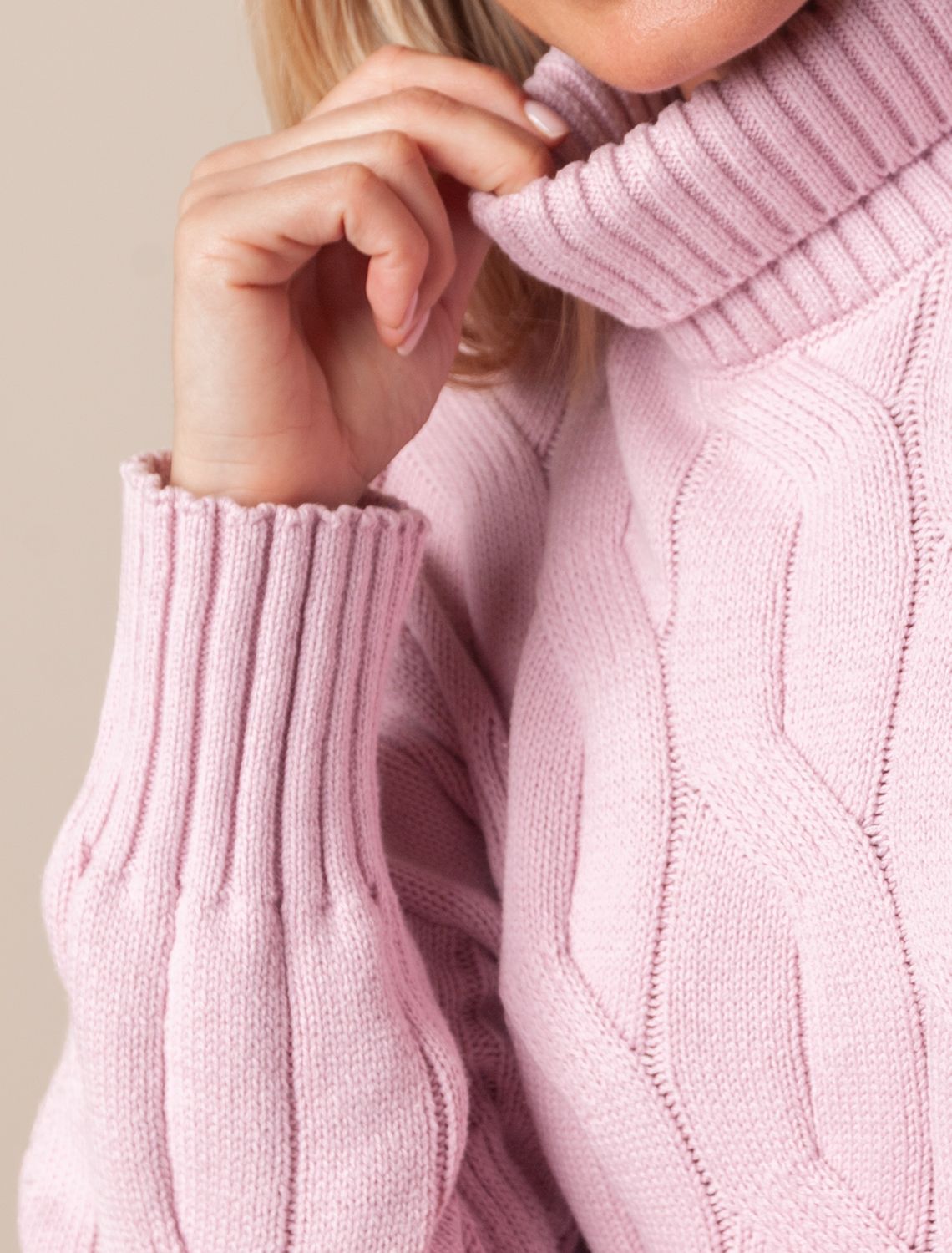 Уютный свитер с крупной вязки с узорами косы выполнен из мягкой хлопковой пряжи с акрилом. Модель абсолютно не колется и очень комфортная в носке даже на голое тело. Отлично согревает при этом не перегревая. Хорошо сочетается с брюками из эко-кожи и джинсами на флике, вельветом.