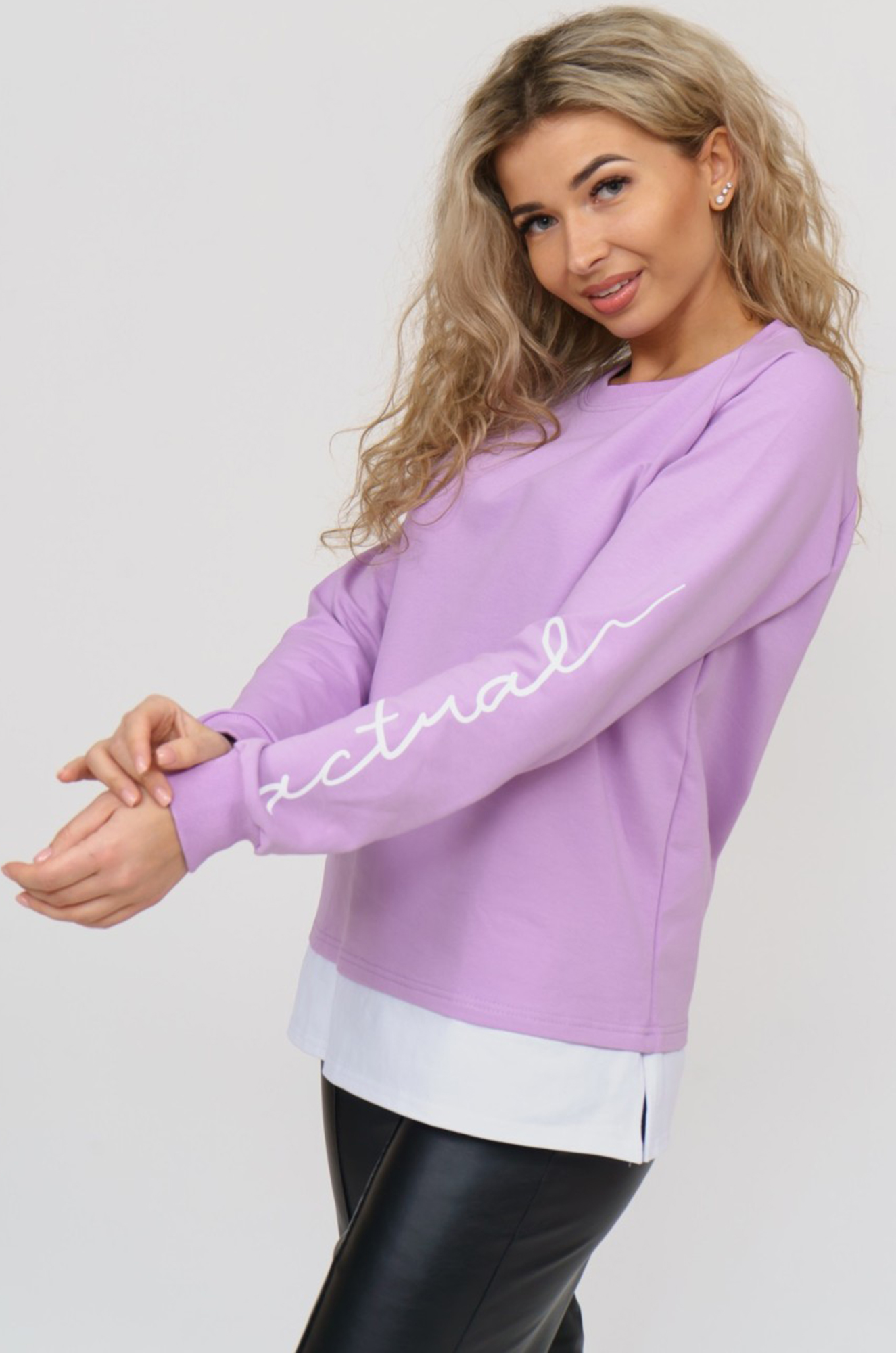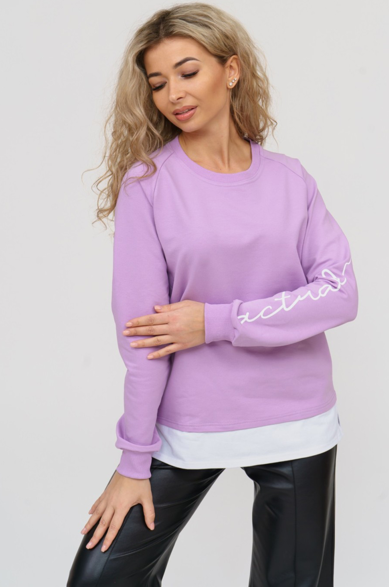 Стильная женская толстовка - имитация "двойки". Модель свободного кроя, на рукаве неброский, но эффектный печатный принт.