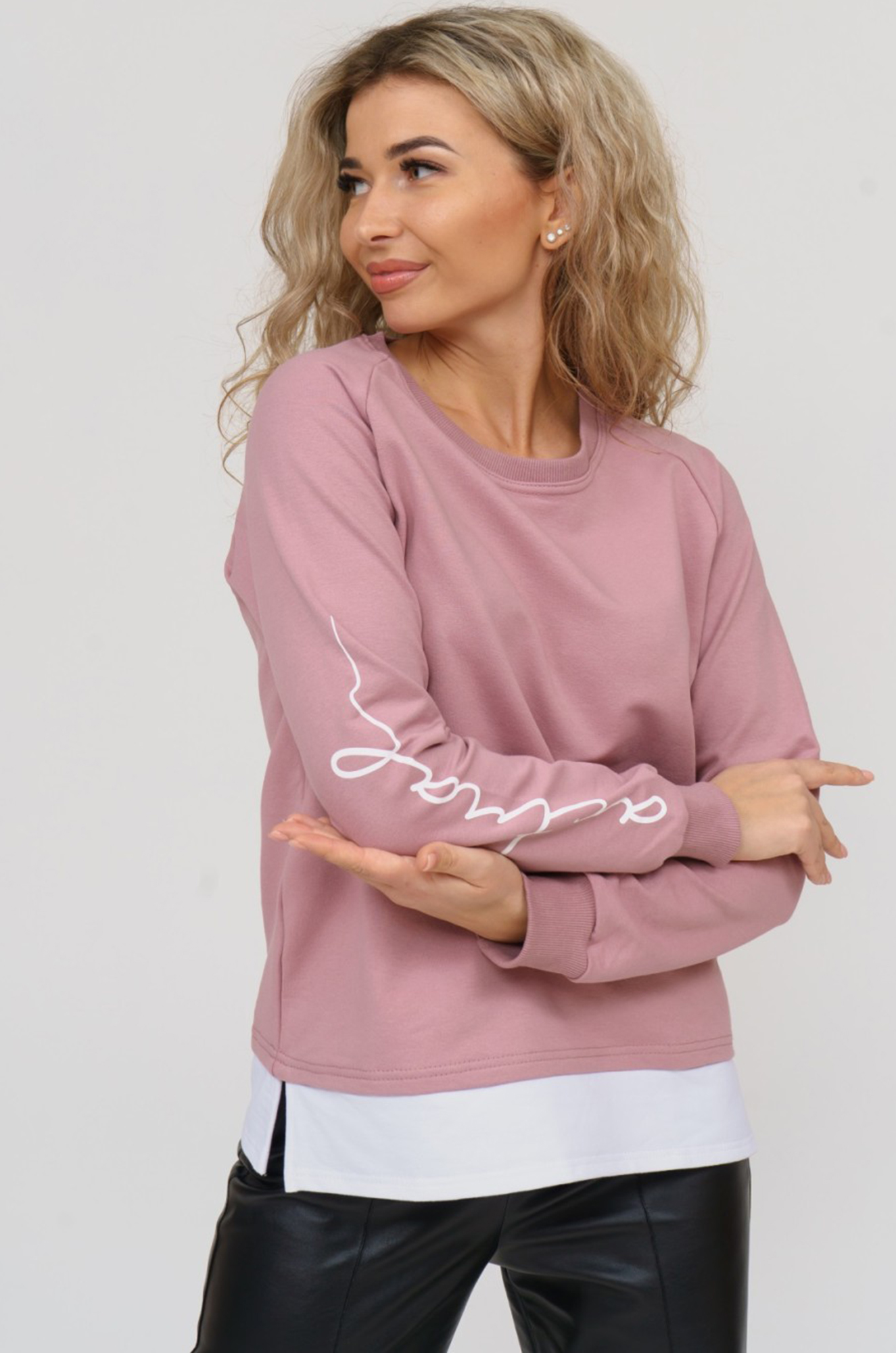 Стильная женская толстовка - имитация "двойки". Модель свободного кроя, на рукаве неброский, но эффектный печатный принт.