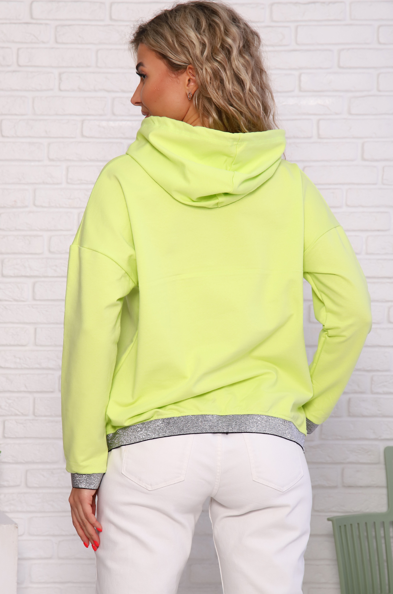 Стильная женская толстовка с капюшоном. Модель прямого кроя, на полочке печатный принт, низ изделия и рукава на эффектной широкой резинке с люрексом.