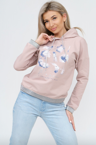 Стильная и удобная толстовка с капюшоном, с центральной застёжкой на молнию. Модель с удлинённой спинкой, с глубокими рельефными вытачками и удобными карманами. Печатный принт на спинке и на полочке отлично дополняет модель, делая ораз более ярким и "не скучным".