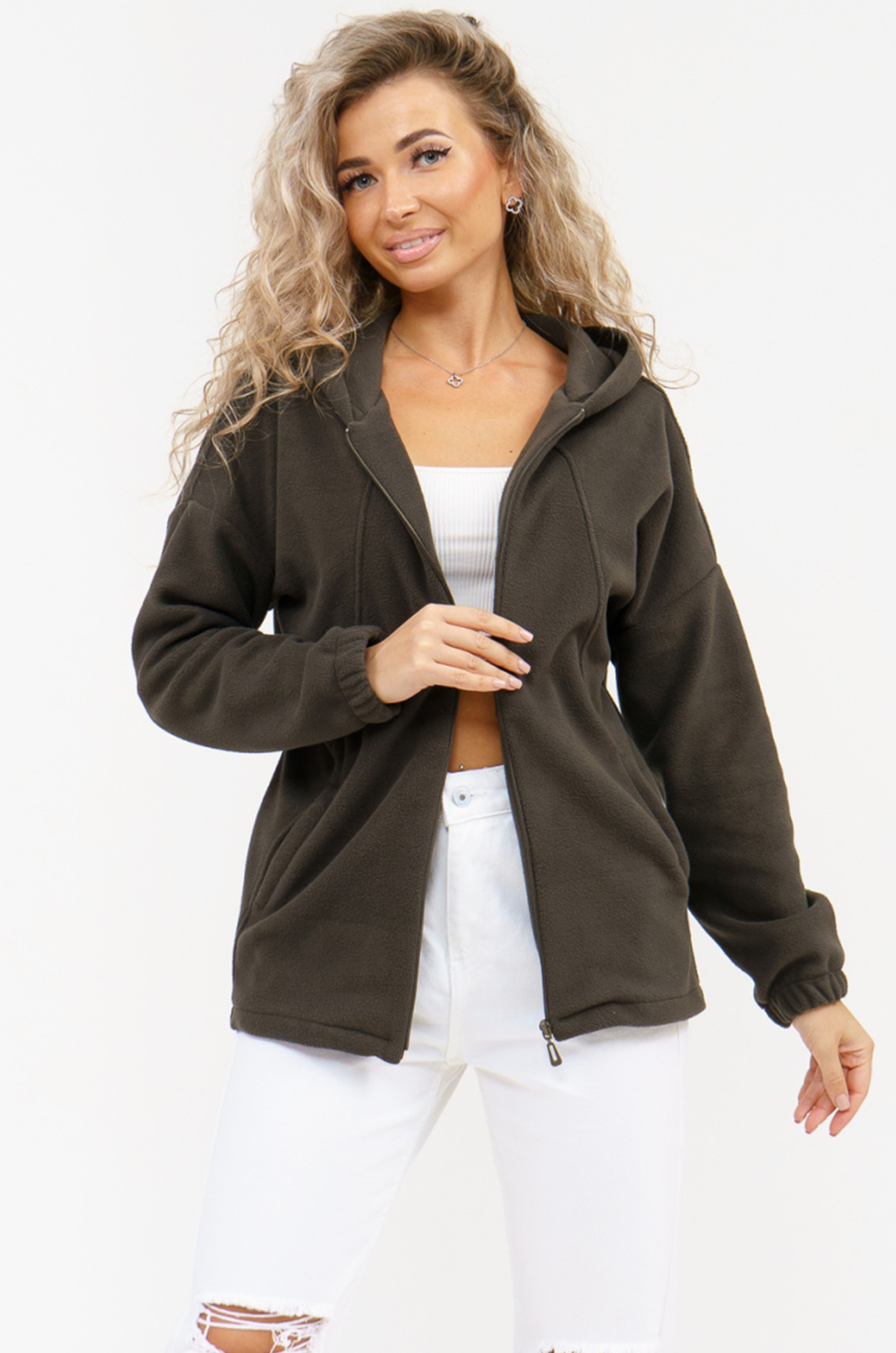 Женская флисовая толстовка с капюшоном, застёжка - молния, удобные вместительные карманы.