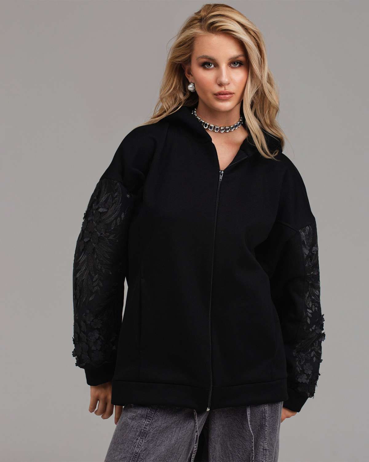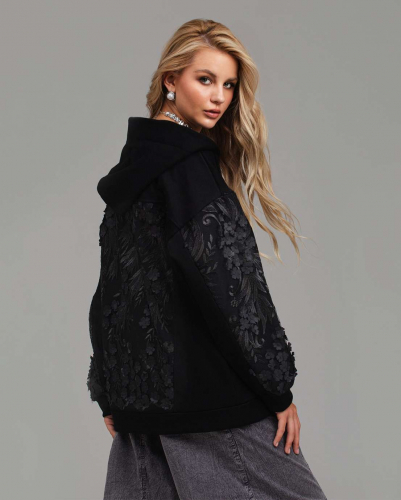 Толстовка оверсайз свободного кроя на молнии — это не просто предмет гардероба, а настоящий мастхэв для каждого модника. Изготовленная из теплой ткани с начесом на флисе, она подарит вам ощущение уюта в холодные дни. Элементы кружевной отделки и аппликации придают ей уникальности и изысканности, подчеркивая ваше чувство стиля.